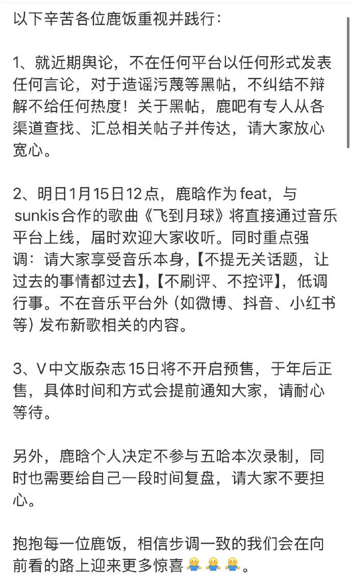 被全平台限流的鹿晗,被大粉爆料全面歇工。 大粉列出4点号令鹿晗粉丝依照实行,此中透露鹿晗将不加入新综艺《五哈》的录制,以及新杂志不开启预售、新歌不宣传,要“低调行事”。 尽管鹿晗粉丝频频夸大,鹿晗的这些决定是为了低调,“给本身一段时间复盘”,但认真思考,肯定没这么简单。 鹿晗前段时间由于直播中有不雅手势,遭全平台限流、克制新用户关注,1月6日处罚落实后,鹿晗工作室发文致歉,认可被限流是“因在直播过程中,做出了不良树模,在此审慎致歉。” 细想一下,明星想低调很简单,社交平台不发文、只管淘汰公开亮相以及和粉丝互动,至于大粉说的,不搞杂志预售,确实也符合“低调行事”的动机。 但至于不录制《五哈》,肯定和“低调行事”及“给本身一段时间复盘”无关。为啥这么说? 《五哈》这么多期以来,实在录制过程保密都做的蛮不错的,根本没有多少路透照传出来,也没有引发过全网关注,作为一档真人秀节目,《五哈》和其他节目一样,既不是直播,也不是边拍边播,节目都是一口吻录完,然后平台择机播出。也就是说,《五哈》现在开启录制,最快也是春节后播出了。 那叨教,节目播出时,鹿晗的风波早就过去了,该低调、该反省也都差不多了,现在录制有什么题目? 答案只有两个,鹿晗不得已退出节目录制,或节目组停掉了鹿晗的录制,不管哪一个,都是不得已而为之,正常环境下,有工开、有活干,谁会拒绝呢? 纵观鹿晗近几年的奇迹发展环境,用一个“惨”字足以概括。影视方面,《上海堡垒》之后就没有新的电影作品,《穿越火线》《在灾难逃》之后也没有新剧拍摄,这都过去四年多了,不停没有接到片约。 代言、商务不多,演出市场这么火,鹿晗也只在2023年开了五场,2024年一场演唱会也没开,他在干嘛呢? 综艺方面,这几年就剩下一个《五哈》了。可如今,这个铁饭碗也保不住了。试问,在如许的环境下,原来工作就少得可怜,但凡能录制,鹿晗会放弃? 固然,背后深层次原因,在这里也没法给出答案,网上的“诡计论”铺天盖地,说鹿晗被处罚不是由于已颠末去好久的直播,而是由于违背了其他法律法规。我也想说,如果只是由于一个手势、一根手指,不至于这么严峻吧? 只是,不管是直播出状况,照旧近几年不停走下坡路的奇迹发展,都要归咎于鹿晗七年前的谁人选择。 将时间推回到2018年2月28日,鹿晗做出了奇迹上的紧张决定。他通过工作室发公告,公布与壹心娱乐解约。 纵观鹿晗的奇迹轨迹,他在2014年上诉要求与韩国经纪公司SM条约无效,接着返国与壹心娱乐睁开相助。 如今回看这份公告,有两个很紧张的信息。 一个是“过去三年的相助过程中”道出了双方相助了三年,时间应该是 从2015年年初到2018年年初。这三年,壹心娱乐捧鹿晗、为他拉资源可谓尽心尽力,帮他接到了跑男、送他上了春晚,拍了《择天记》《甜蜜暴击》两部剧,另有《我是证人》《盗墓条记》《长城》等电影,甚至塞进了主旋律大片《建军大业》,杂志封面更是难以细数。 一句话,壹心娱乐把鹿晗捧成了顶流。 没有人会拒绝给本身带来长处的人,除非会侵害本身的长处。 不少人说,鹿晗和壹心娱乐解约,是由于他公开和关晓彤恋情,让老板杨灵活不满,怒而解约。这怎么大概呢?当时鹿晗正在奇迹上升期,显然是壹心娱乐最大的摇钱树,没有人会跟钱过不去吧? 但换个态度,鹿晗也不想跟钱过不去,本身都这么红了,为啥每个工作都要把钱分给经纪公司啊,本身拿欠好吗?成年人的天下里,分分合合肯定都是长处啊,毕竟谈感情伤钱。 以是就有了公告中第二个紧张信息点:“相干工作已完成交代,之后将由鹿晗工作室独立运营。” 也就是说,和壹心娱乐解约之后,鹿晗本身当老板、本身搭台唱戏,固然要给员工开工资,但相比之前把挣的钱分给壹心娱乐一大部分,照旧本身当老板更划算一些。 但他忽略了一点,就是经纪公司固然要分走本身很大一部分报酬,但同时也提供对等的服务代价。 此中一部分是帮着他把关项目、挑选脚本、对接业内各种资源。和壹心娱乐相助的三年里,鹿晗有两部电影、五部电影,这不都是壹心娱乐夺取到的吗?而且口碑都还不错,固然《长城》观众评价不太好,但相助张艺谋、出演国际大片,这是多大的一张饼啊! 和壹心娱乐分手之后呢?电影只有一部扑街抵家的《上海堡垒》,而且在那之后鹿晗就再也没接到过电影片约了。 另一部分就是对接综艺、商务和媒体宣传,和壹心娱乐解约后,鹿晗在这几方面也显着滑坡,无法和壮盛时期相比。 另有很紧张的一部分,经纪公司会帮艺人规划奇迹发展,同时也会规范艺人的言行,另有实时订定公关计谋,在经纪人这个行当里,杨灵活算是一线了,如果鹿晗不跟壹心娱乐解约,我相信大概率会规避掉那次直播事故,而且即便直播事故出现了,公司也会实时应对,给出公道的公关方案,不至于发酵到本日这一步。 我很想问问鹿晗会不会悔恨七年前的谁人决定,反正换做我,肯定肠子都悔青了。 |