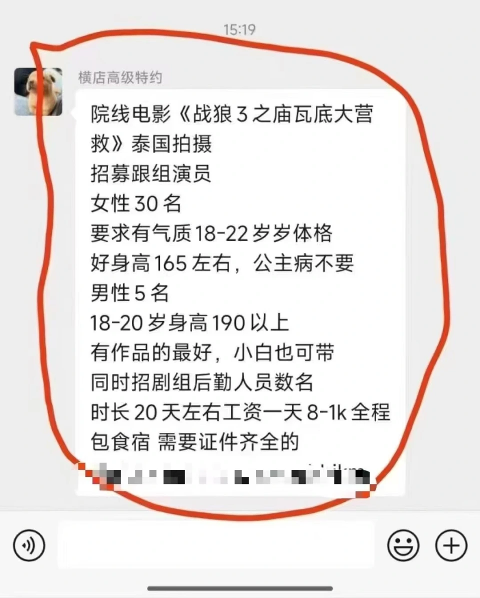 1月17日破晓,被骗至泰国失联的演员杨泽琪得救返国,他通过交际平台发视频比V,IP表现已落地北京,他写道:“落地第一时间和大家报安全,感谢全部关注我的同胞,感谢亲人和朋侪,我能返来离不开你们任何一个人,我爱你们。” 固然杨泽琪看上去眼神有光、心情轻松,但眼尖的网友发现他右手大拇指的指甲没有了,手指有淤血形成的玄色,对比以往照片不太一样,以是猜疑指甲被拔掉,很可能在境外这近一个月遭受了荼毒。 杨泽琪是12月20日前去泰国,原筹划已往拍戏10天,但已往不久就和家人失联。王星事故发酵后,杨泽琪的父亲也效仿王星的女友,赶赴泰国报警并立案,积极救子,并先后接受多家泰国媒体采访。其时署理杨泽琪案件的泰国状师事务所透露,案件已在泰国中心观察局反人口贩运司正式立案,终极在1月16日救回儿子。杨泽琪参演了《志愿军:生死之战》,有消息透露,电诈团伙正是看中杨泽琪的颜值,想利用他骗更多女孩子被骗,这才将他骗至妙瓦底。 王星和杨泽琪可以说都是死里逃生,他们的履历本该让全部怀揣影视梦的青年警醒一些,不要轻易信赖来路不明的组讯,接到境外拍摄的约请肯定要擦亮眼睛,谨防被骗,两个人很荣幸,在亲人的帮助下乐成得救返国,但尚有很多依然没能摆脱境外电诈团伙的控制,身处在水深火热之中。 然而,现原形况是,演员被骗到妙瓦底的消息热度未退,干系的组讯却愈演愈烈,每天都在各个电影群疯传,以致有所谓的casting打着《战狼3》的名义招募演员。 好比我们就在某演员群看到了自诩“横店高级特约”的人发了招募信息。 组讯里指出拍摄项目为院线电影《战狼3之庙瓦底大营救》,拍摄地为泰国。这里不确定是把妙瓦底的“妙”写错了,照旧为了暗昧地点而故意为之。 招募跟组演员多达35名,此中要求30名女性,条件比力宽泛,身高165,年岁18到22岁,要求是“公主病不要”,别的还要5名男性,年岁在18到20岁,条件是身高要在190以上,有没有作品都可以。同时还招剧组后勤人员数名。至于待遇,拍摄时长20天左右,工资一天800到1000,全程包食宿,必要证件齐备。下面留了接洽方式。 必要阐明的是,剧组里的跟组演员自己不算特约,根本就是哪必要就往哪上,可能是给主演做光替,也可能是客串一些不告急的镜头,或不露脸的背影等等,一样平常跟组演员的收入大概在8000到10000元一个月。但组讯里给出的800到1000每天,是特约的待遇,相当诱人,拍摄20天,顺利的话就能拿到2万元的收入,对于刚入行或接不到活的小演员非常有吸引力。 而片名就更有意思了。众所周知,吴京的《战狼2》上映已颠末去七年多,第三部迟迟没有启动,这期间,吴京参加了两部流离地球系列电影,拍了几部主旋律大片,他和谢霆锋、于适等演员互助的《镖人》刚刚达成,如今正处在后期阶段,《战狼3》肯定没有上马。 以是根本可以断定,这条组讯里的“战狼3之庙瓦底大营救”肯定是虚假的项目,招募演员大概率也是骗到妙瓦底送进园区,但高薪简直会给年轻人带来很大的吸引,而雷同的组讯,每天都在影视微信群里疯传。 最后照旧盼望各个行业协会和媒体能多宣传、多遍及,碰到雷同的组讯肯定要擦亮眼睛,不要再有演员被骗的情况发生了。 |