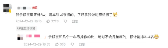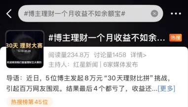 1月20日,B站五位博主比拼理财收益的视频火了。 每位博主的初始本金为8万,近来一个月各自分头理财,通过末了的收益比赛出 “理财王”。 一个月下来,五位up主投资均亏损,险些都没跑赢余额宝。只有此中一位由于美元汇率差,倒赚了400元。这一戏剧化的结果也引发了数百万网友围观,有网友真情实感代入自己:“笑着笑着就哭了”。 五位博主的投资本事可谓是“花样百出”:有人奉行“分散投资”策略,ETF、纸黄金、中概股、新能源等多管齐下,但满是高风险投资;有人坚信“做空美股”,中途却转投其他;有人半路抄底,却抄在了“山腰上”;有人高点买入,直接山顶站岗;还有人利用AI理财,通过“卧底”散户群,将散户信息整合做正向或反向操作。 终极, up主“杰克小兔”运气加持,由于汇率上涨赚了400元,得到了“理财王”称呼。而其他四位up主均有差别水平亏损。 在比赛期间,Up主也听网友的发起将余额宝作为对照组。而根据余额宝内所有货币基金的均匀收益1.4%盘算,一个月能赚90多块钱,打败了四位up主,夺得“第二名”。 自己亏钱“痛心疾首”,看别人亏钱则长舒一口气。网友们也“蚌埠住了”,纷纷下场讥讽:“什么做都不做就能第二”、 “原来‘放余额宝跑赢80%投资者不是段子’”。 理财的网友也纷纷化身“场外选手”申请出战,拿出了自己近期的投资成绩和UP主们“一较高下”。 毕竟上,投资有风险,市场永世有颠簸,不是一句空话。网友们通过这场实战悟了:比起豪富大贵,先“稳住”是第一位的。在任何时候,投资者都须要明确投资目的和自身风险偏好后再理性做决定。 潇湘晨报记者李鑫智 报料、维权通道:应用市场下载“晨视频”客户端,搜索“报料”一键直达;或微信添加报料客服:xxcbcsp;或拨打热线0731-85571188。如需内容合作,请拨打政企服务专席19176699651。 |