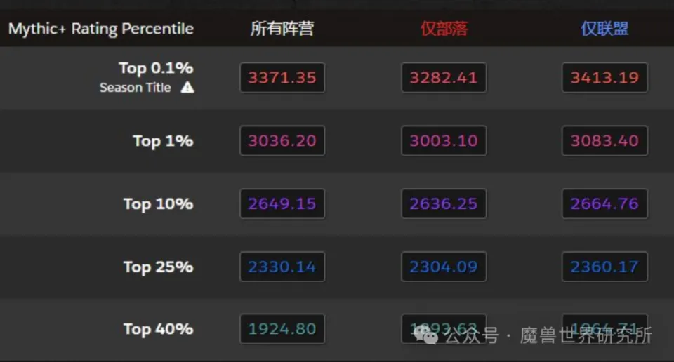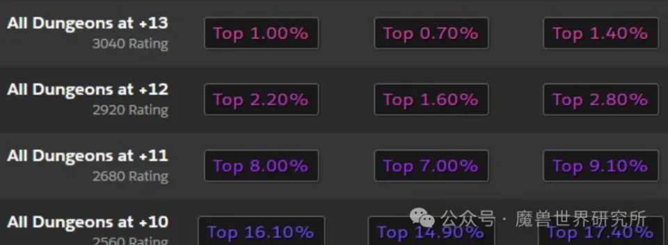 根据RaidIO的数据,环球范围内,仅有16.1%的玩家能做到8门全开,只有2.2%的玩家能全限12层。同盟的百分比比部落高。假如你分数到达2649分,已经是前10%了! RaidIO的外服玩家数据是逼迫上传的,国服玩家根本是手动上传的,因此数据照旧比力可靠的。 |