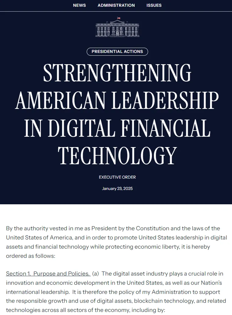 美国本地时间 1 月 23 日,白宫发布了首个加密货币的行政下令。 在华盛顿白宫的椭圆形办公室里,特朗普签订了一项行政下令以推动美国加密货币的发展,建立一个负责搭建新数字资产羁系法规的“加密货币工作组”,同动手研究创建国家数字资产储备的大概性。 这项政策,对于曾经在首个任期内品评过加密货币的特朗普而言是一个重大转变。据悉,在 2024 年的竞选活动中,特朗普采取了与先前截然差别的态度,积极支持加密货币和人工智能范畴的发展,并任命风险投资家 David Sacks 作为他的加密货币和人工智能范畴特殊顾问。 值得一提的是,特朗普不久前推出“meme 币”的举动更加印证了他之前答应对加密货币的支持。 要知道,2024 年由于特朗普在竞选过程中改变了对加密货币的态度,他赢得了来自该行业的大量捐钱。据估计,在 2024 年推举周期中,来自加密货币投资者、公司及高管的捐钱几乎占据了企业捐钱的一半,一些个人和机构乃至贡献了数千万美元以帮助特朗普重返白宫。 行政下令具体办法 此次签订的行政下令的告急内容会合在创建围绕加密货币的技术规范和规章制度,其中一项告急步伐是建立一个“加密货币工作组”,探讨创建国家数字资产储备。 据相识,“加密货币工作组”将由 David Sacks 向导,工作组其他成员还有多位告急当局部分负责人或其指定代表,包罗美国财政部部长、司法部部长、商务部长、证券生意业务委员会主席以及商品期货生意业务委员会主席等。 按照行政下令的要求,“工作组”需在行政下令发布后的半年内向特朗普提交一份关于羁系和立法的建议的详细陈诉,重点关注构建一个联邦当局羁系体系,这个体系将覆盖美国境内全部范例的数字资产,特殊是稳固币的发行和运营;别的,还要深入探讨市场运作的方式、行业监视的标准、掩护斲丧者权益的方法以及如何管理风险。 简朴明白,“工作组”不光要着眼于订定规则以确保数字资产市场的有序发展,同时还要保障斲丧者的权益,并有效控制大概的风险。 针对“币圈”比力有代表性的比特币,从汗青上来看,美国法警局曾拍卖过被没收的比特币。此前,特朗普曾在竞选时答应,若再次入主白宫,将确保联邦当局永世不会出售其持有的比特币。 彼时,他在田纳西州纳什维尔举行的比特币集会上声称:“如果我当选,将 100% 生存美国当局当前持有或将要获取的全部比特币。”然而,此次签订的行政下令中并未具体提及到比特币。 除此之外,行政下令详细列出了数字资产行业其他的关键优先事项,比如掩护使用区块链网络的个人和私营公司免受“毒害”(防止对区块链技术的过分羁系或不公平对待)。 文件中也明确了对开辟者和“矿工”的某些掩护步伐,指出他们应该能够自由地“开辟和摆设软件”,以及“到场挖矿和验证”,而这反映出对掩护比特币网络安全的技术职员的认可。 特朗普答应掩护那些选择自行保管数字资产的人的权利,这意味着这些用户不再依靠 Coinbase 如许的中心化实体来持有代币,而是使用个人加密钱包。 该行政下令还夸大了通过支持正当、美元支持的稳固币(与美元代价挂钩的数字货币,旨在保持代价稳固)在举世范围内的增长,来促进美元的主权地位。 围绕加密货币,特朗普也在不停“扩充团队”。现实上自从 2024 年 11 月胜选以来,特朗普一直在任命支持加密货币范畴的当局向导人。其中,Paul Atkins 已被提名担当美国证券生意业务委员会主席。 作为前证券生意业务委员会专员,Paul Atkins 以提倡市场友好型政策和反对严肃羁系而闻名。如果这一任命得到证实,他将接替因严酷实行加密货币法规而在业内引起争议的 Gary Gensler。 另据相识,本周早些时候美国证券生意业务委员会公布建立一个新的“加密任务小组”,由专员 Hester Peirce 向导。长期以来,Hester Peirce 一直倡导了促进创新而不是阻碍它的羁系框架,由于她对数字货币的公开支持,还被冠以“Crypto Mom”的称谓。别的,支持加密货币的对冲基金司理 Scott Bessent 被特朗普任命为财政部长。 推出 meme 币印证对加密货币的支持 值得一提的是,特朗普在宣誓就职总统前还推出了自己的 meme 币($TRUMP)。大概是他的法律顾问团队以为在职总统发币大概存在法律风险,因此要在上任就职之前赶紧完成。 虽然 meme 币也属于是一种加密货币,但其多数以互联网文化、某个梗或交际媒体热门为灵感,缺乏传统加密货币所具有的实用性和技术底子。比方,受到马斯克大力放肆推广的“狗狗币”(DOGE)就是以一个柴犬心情包筹划而来。 这种 meme 币的代价通常依靠于关注度、炒作效应和交际媒体传播,而非现实的技术创新或商业应用,正是由于云云,其没有实质性应用代价且颠簸性极大,代价极易受交际媒体趋势、名流影响或短期炒作驱动,容易快速升温也大概敏捷崩盘。 其时,特朗普通过自己的交际账号向粉丝倾销自己的 meme 币。发行后的短短一天内,代价在飙升到了 70 多美元,市值达到了 150 亿美元。固然,估计大部分人都是冲着未来四年美国新总统的名头去买的。 与此同时,特朗普夫人梅拉尼亚也紧跟步伐推出了自己的 meme 币($MELANIA),市值最高的也达到了 130 亿美元。 然而,业内却出现了反对的声音。在特朗普夫妇推出 meme 币的时候引来加密货币行业的品评,称这种 meme 币大概会严重侵害加密货币的团体声誉,对特朗普本人以