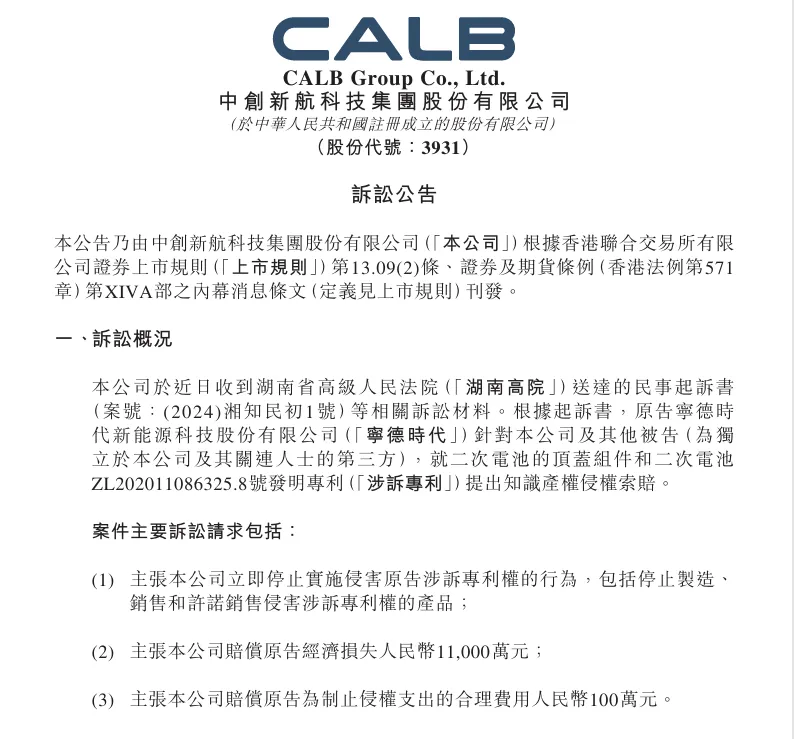 三言科技 1月29日消息,1月28日,中创新航在港交所发布公告,公司于克日收到湖南省高级人民法院送达的民事告状书等干系诉讼材料。 中创新航称,根据告状书,原告宁德期间针对公司及其他被告(为独立于公司及其关连人士的第三方),就二次电池的顶盖组件和二次电池ZL202011086325.8号发明专利提出知识产权侵权索赔。 案件重要诉讼哀求包罗: (1) 主张公司立刻克制实验陵犯原告涉诉专利权的举动,包罗克制制造、贩卖和允许贩卖陵犯涉诉专利权的产物; (2) 主张公司补偿原告经济丧失人民币1.1亿元; (3) 主张公司补偿原告为克制侵权付出的公道费用人民币100万元。 |