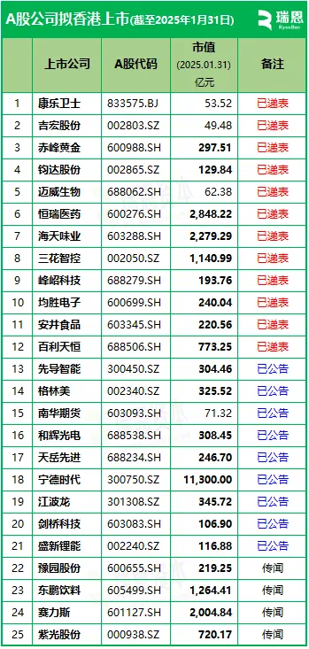 A股上市公司,赴香港上市正在成为趋势。自中兴通讯(00763.HK)于2004年10月9日率先在香港上市以来,制止目前(2025年2月3日)已有47家A股上市公司在香港发行H股上市,此中18家是在香港上市改革(2018年4月30日)以后上市的。 港交所与香港证监会于2024年10月18日作出连合声明,公布将优化新上市申请审批流程时间表,此中包罗对于市值逾百亿的合资格A股公司设立快速审批,证监会及联交所分别只会发出一轮羁系意见,两家羁系机构各自的羁系评估将在不多于30个业务日加快合资格A股公司审批流程。 目前正在筹办的A股公司至少21家,此中已经递表12家、已公告拟赴香港上市的9家,别的另有听说香港上市的4家。 瑞银,料本年逾30家A股在香港上市 瑞银证券环球投资银行部联席主管谌戈Edwin Chen预期,A股公司赴香港上市是本年香港IPO市场的紧张趋势,整年或凌驾30家。 谌戈表现,H股与A股估值差距收窄、中港IPO羁系因素利好、以及内企出海发展必要一个境外的上市融资平台来匹配其出海战略等,都是本年A股来港上市转趋活泼的关键。 「从前为什么相对少一些A股公司来港上市,因为双方估值差大概大一些,惟这几年本身A股估值也有团体调解,港股表现相对稳固,以是这中央的差距在缩小。」 中金公司投资银行部实验负责人许佳表现,A股公司若能乐成发行H股且保持精良表现,则有望连续,条件是价差不宜太大,且吸引国际机构投资者参与认购。 许佳指出,美的、顺丰的乐成表明如果前几家公司可以或许顺遂上市并表现精良,将会形成良性循环,但夸大也会受市场感情影响。许佳表现,外资对于高质的A+H项目仍有不少兴趣。 港交所早前刊发优化初次公开招股市场定价及公开市场的咨询文件,许佳说,低落A+H发行人在港上市的最低H股股数门槛新规,受到投行及发行人接待,特别是一些市值较大的发行人,如按以往方式发行15%股份,生意业务规模会太大;A股公司来港发行H股之主要目标,未必是寻求巨大集资额,而是希望拥有境外上市平台、方便举行再融资等。 版权声明:全部瑞恩资源Ryanben Capital的原创文章,转载须接洽授权,并在文首/文末注明来源、作者、微信ID,否则瑞恩将向其追究法律责任。部门文章推送时未能与原作者或公众号平台取得接洽。若涉及版权问题,敬请原作者接洽我们。 |