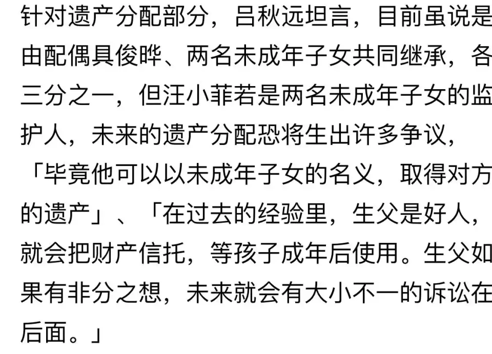 48岁的大S徐熙媛忽然离世,如同晴天霹雳。 陪伴着伤心,人们对大S身后事的关注,也渐渐升温。 大S这些年创造了无数的财产,从影视剧到综艺节目,从代言广告到贸易投资,她险些无所不能,积累了相当可观的身家。 现在她撒手人寰,这些财产将何去何从,也成为了众人关注的核心。 围绕着大S的遗产分配,有三大疑点,大概在不久的将来,亟待揭开: 疑点一:大S留下的身家,毕竟多少?作为娱乐圈的多栖明星,大S涉足的范畴非常广泛。 她主演了《流星花圃》等多部红透半边天的偶像剧,出演影戏也屡获殊荣,片酬收入非常可观;同时她照旧综艺咖,主持过《我猜我猜我猜猜猜》等多档王牌节目。 代言广告更是接得手软,从美妆时尚到食品饮料,她的身影无处不在。据统计,仅代言费一项,大S就赚得盆满钵满。 除了演艺奇迹,大S的贸易触角也伸得很广。 她投资餐饮、房地产等多个范畴,据传光一套房产就代价上亿。她还建立了本身的时尚品牌,店肆遍布各大都会,销售业绩非常亮眼。 有娱乐圈人士爆料,一年下来光是贸易收入,大S就有数万万进账。 据业内人士估算,这些年大S的身家累积起来,大概高达十亿新台币,约合人民币两亿多。 然而,这此中毕竟有多少资产可供分配,目前尚不得而知。 由于娱乐圈明星收入虽高,但花销同样惊人。 那大S的遗产到底有多少,无疑是揭开遗产分配迷局的第一环。 值得一提的是,除了有形资产,大S的无形资产也相当可观。 她拥有多个公司的股权,手握诸多专利和版权;她的艺名本身就是一个金字招牌,背后蕴藏着巨大的贸易代价。 因此,在评估大S的总资产时,这些无形资产同样不可忽视,它们固然难以用具体数字权衡,却代表着连续创收的大概。 在这些无形资产中,最引人注目标要数“大S”这个艺名本身。 无论是影视作品,照旧贸易合作,只要沾上“大S”两个字,代价就变得不再一般。纵然大S本人已经离世,她的艺名代价仍将连续发酵,为遗产增值锦上添花。 固然,我们也必须看到,在估算身家时,每每容易忽视债务题目。尤其是对于明星而言,看似光鲜亮丽的背后,大概隐蔽着不为人知的债务危急。 大S的环境毕竟怎样,亦是一大牵挂。 撇开债务不谈,单是理清大S的资产状态就已经是一项浩荡的工程。 她的投资版图辐射多个行业,触角延伸至海内外,要将这盘散沙汇总成可供分配的遗产,非一朝一夕之功。 总的来说,大S留下的遗产毕竟有多少,大概只有她的身边人,才华知晓。 根据公开数据及媒体报道,大S的身家,目前紧张由三部分构成,约莫在10亿新台币(约合人民币2亿),分别为: 房产方面,大S有一套位于台北的别墅,代价2亿新台币,是婚前财产。 婚后,汪小菲曾赠与大S一套房产,约4亿新台币左右。 另外,2014年,汪小菲和大S还在北京购入一套四合院,代价约1亿人民币左右。 投资方面,2013年,大S曾购入某医美机构的股权,每年分红近万万新台币。 位于台北的 “SHotel” 佳构旅馆,大S仍持有12%股权。 其他资产,好比大S与妹妹小S共同建立的服装品牌 “Sisters”,每年的营收早已过亿。 这么多年,大S积攒的奢侈品,豪车等,保守估算,约莫有3亿新台币。 固然,这些财产大概并非全部,大S应该还会有现金,知识产权以及其他方面的资产,具体有多少,就不得而知了。 唯一可以确定的是,当初谁人白手发迹的女孩,凭借本身的智慧和积极,险些创造了一个贸易帝国。现在帝国的主人虽已驾鹤西去,但她的财产依然令人瞠目结舌。 这笔遗产怎样分配,硝烟大概才刚刚开始。 疑点二:大S生前,到底有没有立下遗嘱?根据干系法律规定,假如逝者生前立有合法有用的遗嘱,那么遗产分配将严格按照遗嘱实行;反之,若没有遗嘱,才会启动法定继承步伐。 显然,大S生前是否留下遗嘱,将极大地影响遗产分配的走向。 然而,关于遗嘱题目,目前众口纷纭。 一种说法是,作为金融大鳄的大S,理财意识很强,早就为身后事做了全面准备,必然立下了细致的遗嘱。 据媒体报道,大S曾被预言活不外50岁,以是早早就立下了遗嘱。 大S与前夫汪小菲仳离后,也曾修改过一次遗嘱,将大部分财产留给了女儿和儿子。假如这种说法属实,那遗产分配将以大S的后代为核心睁开。 但也有圈内人士持差别观点,他们以为以大S的个性,未必会提前立下遗嘱。 一来她年事尚轻,大概还没有那么强的危急意识;二来她性格豪迈,大概以为立遗嘱太过煞风景。 假如大S生前未留下遗嘱,那遗产分配大概就没有那么简朴了。 众所周知,遗嘱是一个人生前对财产分配的意愿表达,它既是对身后事的交代,也是对亲朋挚友的告别。 好比说,大S是一个极其器重家庭的人,她常说儿女是她生命的全部。假如在遗嘱中,大S将绝大部分财产留给后代,那将证明她的母爱有多么深沉。这份遗嘱,将化作她对后代的末了嘱咐,拜托着她对儿女将来的优美祝福。 再好比,大S同样有一颗善良柔软的心。她的发小陈乔恩曾透露,大S在外再风光,回抵家中也是个贴心的闺蜜,经常为朋侪煮饭喝茶,谛听他们的喜怒哀乐。大S在遗嘱中,是否也会为这些磨难与共的朋侪留下一些馈赠,表达她的情谊?这同样值得等待。 固然,我们也不能排除另一种大概,大S一生快意恩仇、实时行乐、是个十足的潇洒性子,大概在她眼中,款子本就是身外之物,何必明白分配?这也未尝可知。 不管怎样,遗嘱代表的是大S心愿。 倘若大S确实立过遗嘱并得以公开,我们将从另一个视角解
