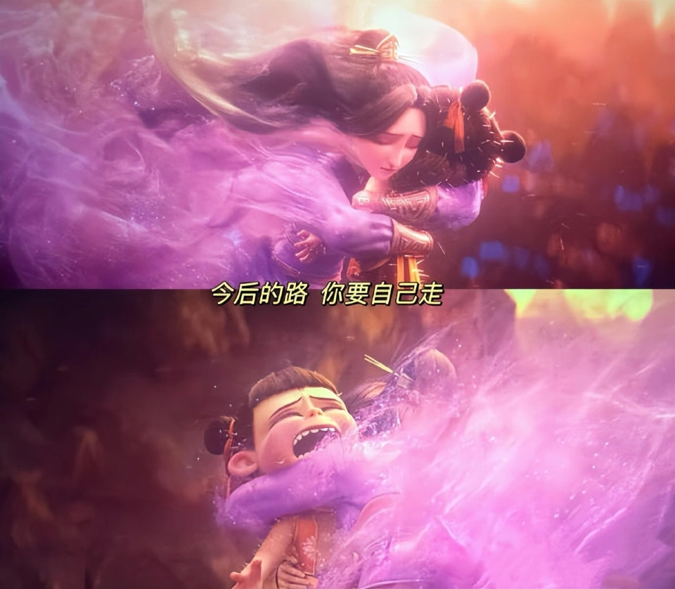 在饺子的哪吒系列里,殷夫人绝对是灵魂人物!她又勇又大爱,对哪吒的发展但是起着决定性作用。 哪吒身上的 “孩子气”,全靠殷夫人的关爱和包涵才得以显现。她不但是哪吒的母亲,更是他的精神支柱。 当陈塘关的老少都躲着“魔丸”哪吒,恐怕他一个不高兴就拆家时,殷夫人开启“护崽模式”: