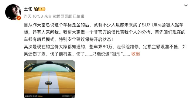 好家伙,米粉们最期待的两个超大杯,一起来了。 这不前两天,雷总就发了个拜年微博,顺带预告了一波: 小米 15 Ultra 现在新机已经在官网开启了预约模式。 不外官方暂时还没有公布相干的信息,咱只能从一些第三方爆料内里找线索。 现在小米 15 Ultra 国际版已经在 GeekBench 的数据库上露面。 CPU 峰值频率 4.32GHz,GPU 是 Adreno 830。 图源见水印 正面将会一连四等深微曲玻璃,参数上大概率是 Pro 同款的 2K M9 屏。 固然单点超声波指纹肯定是安排上了。 之前是两两对称的四摄布局。 小米 14 Ultra 但这次的 15 Ultra,酿成了「L」字形的四摄排列。 辣么题目来了,怎么好端端的要改成酱紫呢? 小米 15 Ultra 的后置镜头规格,应该有不少机友已经相识过了。 5000W 像素 LYT-900 一英寸主摄 5000W 像素 JN5 超广角镜头 5000W 像素 IMX858 3x 直立长焦 2 亿像素 HP9 4.3x 潜望长焦 没错,小米把隔壁蓝厂的 2 亿像素 1/1.4 英寸「灭霸级」长焦,给拿过来了。 而且小米把这颗长焦的光变倍率,做得比蓝厂的更高,远拍性能 MAX。 这次是妥妥的鸟枪换大炮。 根本大,像素高,再加上 Xiaomi AISP 的算法加持,放大 N 倍也能拿捏得住。 别的 3x 镜头部门还带 10cm 的长焦微距,可以说实用性拉满。 好好好,小米这次把影像硬件卷到新高度了。 但是,我又要说但是了。 大概由于堆料堆得太猛,迩来曝光的小米 15 Ultra 真机照,镜头模组部门似乎比渲染图来得更大。 网传真机图 这大圆,看上去就有够唬人,感觉重量和厚度要腾飞。 固然这身材具体到底控制得咋样嘛…就得等发布之后才气发表答案了。 充电部门预计继续给到 90W 有线 + 50W 无线的组合。 另有诸如 IP68+IP69 防尘防水,USB 3.2,卫星通讯,龙晶玻璃之类的旗舰标配规格,信赖都会给到位。 客岁的 6499 起,诚实说已经蛮高了。 而且本年的骁龙 8 至尊版,又涨了一波价。 15 Ultra 能不能维持上代的代价,还真欠好说,就是希望涨价也别涨太多叭。 小米 SU7 Ultra 客岁 10 月发布的 SU7 Ultra,算得上米车放大招。 原型车超 1500 匹的综合马力,1.97 秒的零百加快,最高 2145kg 的下压力。 这性能,玩得太大了。 纽北 6’46"874,直接革新了四门车圈速纪录。 以前做小米手机,主打一个「不服跑个分」。 现在做小米汽车,主打一个「不服跑个圈」。 固然,原型车和量产车照旧会有一点区别的。 量产版 原型车 很显着,这车子就是奔着高端性能车去的。 有条件的小搭档,可以去线下店看看真车。 之前小米展示的 SU7 Ultra,车标就是个普平凡通的银色车标。 但现在展示出来的实车,却酿成了碳纤维+金色的 Logo。 一开始我也是这么想的,直到雷总亲身开腔回应: 我看看,谁还敢说小米汽车没有含金量。 固然也有网友觉得,在车标上搞个真金,似乎有点浮夸了吧? 诶不对,这车标是真金的话。 金车标,立天下? 卢伟冰:立刻安排一个! 话又说返来,现在金价都干到 800 元/克了,这一个小车标抠出来拿去卖,不得小几千? 但是,我要说但是了哈。 一方面,这个金 Logo 虽然没有封层,但很坚固,并不是那么轻易抠得下来。 另一方面,现在大多数新能源车,包罗小米的,都带哨兵模式。 真敢动手的话,咔嚓一下就给拍下来了。 至于除了金车标之外,量产版上关于座舱、智驾、安全性能等细节体验,以及上市代价会和预售的 81.49 万会相差多少,那就得等月尾的发布会才气发表了。 锋潮评测室 一个值得让你吹爆的公众号 |