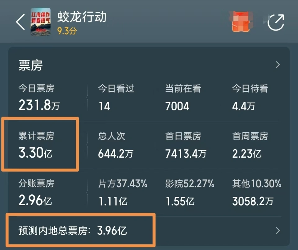 一部“潜艇”如何淹没春节档?揭秘博纳影业的“滑铁卢”与行业变局。——记载啡哥观影春节档第五部影戏《蛟龙办法》。 2021年国庆档和2022年春节档,博纳影业投资的两部主旋律大片《长津湖》《水门桥》,两部影片总票房加起来98亿。 这才过三年时间,博纳再次对主旋律影片动手了,而这次《蛟龙办法》,就像一艘被鱼雷击中的潜艇,无声淹没,会让博纳老总于冬亏到怀疑人生。 那么,这部影戏质量到底如何?票房为何会扑得云云之惨呢?啡哥观影后,和各人共同探讨一下。 一、票房分析。 2025年春节档,中国影戏市场以95亿元的总票房刷新了汗青纪录。饺子导演的《哪吒之魔童闹海》一枝独秀,以一挑五,把同档期影戏打的满地找牙。 除了陈思诚的《唐探1900》依赖IP效应保住了票房走势,别的四部影片都有差别程度的下滑,最为惨烈的当属林超贤导演的《蛟龙办法》了。 该片上映11天,本地总票房仅收3.3亿,单日票房下滑到几百万,排片和上座率与徐克的《射雕好汉传:侠之大者》处于伯仲之间,档期内垫底,已无力回天。 更重要的是,猜测票房目前表现为3.94亿,是否可以大概凌驾4亿,还得看2月14日情人节档开画的新片,是否可以大概发作,一旦新片表现尚可,就会进一步抢占《蛟龙办法》的排片。 进入工作日之后,有些单元开始动手组织包场了,毕竟这几部影戏中,也只有主旋律影戏《蛟龙办法》恰当相干单元包场。 留给于冬的时间,差不多也就20来天,后续起不来,那就真的起不来了。 二、个人影评。 《蛟龙办法》票房垫底,按照其走势,终极只能卖4亿左右。作为重要投资方,于冬近来非常着急,不但路演的时间直呼“黑水”打一星,还在朋侪圈硬刚“绝不撤档”。 难道影片真的一无可取吗? 起首,我们来介绍一下这部影片,以下会有部门剧透,未观影的朋侪,请自行绕过。 故事发生在近将来,我方工作职员在某海域钻井平台作业时,发现了一个不明潜航器,被我们打捞上来了。 过一会儿,一群老外要来抢这个潜航器,附近对接的我方职员发现无法联系到他们,于是派蛟龙小队出动。 颠末一番打斗,老外丢盔弃甲跑路,张涵予饰演的艇长开着潜艇跟着反面追。就在这时间,一枚鱼雷直接把对方逃跑的小艇灭掉了。 张涵予继承跟着反面追,并锁定目的发射了一枚鱼雷,就在岌岌可危之际,海底火山发作,拦截了鱼雷,还把咱们的潜艇弄受损了。 返来之后,段奕宏饰演的上级告诉他们,并不是火山发作,而是有群坏蛋在搞粉碎——叫“恒星操持”。 段奕宏又给了张涵予一艘名叫“龙鲸号”的潜艇,让他带着蛟龙小队再次潜入海底作业,看看能不能探求到坏蛋的蛛丝马迹。 你说巧不巧,反派那里正在闹内耗,并打沉了一艘潜艇,我方发现欲去营救,看看有没有生还者,就如许,不测遇到了谁人啥“恒星操持”。 正面迎战了…… 再说一下我的个人观影感受。 优点,重要体如今三个方面: 其一,殊效过硬。 可以说,这部影戏是本年春节档殊效最牛的一部。 直接碾压乌尔善《封神第二部》大号殷郊“三头六臂”殊效100倍不止; 逾越肖战《射雕好汉传:侠之大者》中的九阴真经和降龙十八掌10倍不止; 对标《哪吒之魔童闹海》中的“洪流大战”和“水火领悟”。 看得见的银子在燃烧。 其二,飞行器和机器狗。 蛟龙小队成员身背喷射装置,从空中快速靠近目的,如“天降神兵”般突入反派钻井平台。其流线型外观与火焰喷射殊效强化了现代科技感。 机器狗则是影片的“反派王牌”,敌方装备的仿生战斗机器人,配备强大的火力发射器,体态强健且钢筋铁骨,在潜艇局促空间中出没无常,几乎将蛟龙小队逼入绝境。 给观众有种看科幻片的感觉。 其三、鱼雷对轰,告急刺激。 正反两方的潜艇在黑暗的海底睁开存亡对决,鱼雷发射的刹时,水压打击波与气泡轨迹被精准捕获,营造出窒息般的克制感。 蛟龙小队的潜艇依附机动战术与精准利用,多次险险避开反派鱼雷,而反派潜艇则在一次致命失误中被击中,爆炸刹时火光冲天,碎片四散,深海仿佛被扯破。 这场戏仍以震撼的视听结果,成为影片为数不多的亮点之一。 末了说一下缺点。 用一言难尽和无力吐槽来形容最为符合。 反派是那里的,为啥要内耗,他们在什么海域,在那里到底干什么,以及攻击的目的和目的是什么,这些根本不交接,让影迷丈二和尚摸不着头脑。 我们这一边在什么地方作业,如果在我们海域,他们的潜艇是怎么开进来的,我们去实行这次任务,完满是靠对方内耗,我们去营救才得知的,完全太过偶合了。 人物塑造几乎为零,不管是我方职员,照旧反派,进入海底之后,都不知道谁是谁,要不是一颗糖,我还不知道蛟龙办法尚有位女好汉。 近身搏击,由于采用了手持摄像,抖得十分锋利,晃得头晕眼花;尚有李晨出舱在海底作业一度失联,张涵予吹口琴大搞煽情等槽点。 林超贤为了吸引王俊凯粉丝进来观影,煞费苦心啊,都没让他进入蛟龙小队,恐怕粉丝看不清他那张俊俏的脸庞,摄影机反复对着他的面部大搞特写。 演技方面和《749局》差不多,就靠着弹吉他、听声音,末了怼了一句张涵予“别催”,让他完成了全片最燃爆的一幕。 话说王俊凯粉丝真没有肖战粉丝刁悍,这么点点票房,多影响你家粉丝将来星途啊。 《蛟龙办法》和之前的《告接济济》一样,团体杂乱不堪,文戏稀烂,光有制作,而忽略剧情和人物塑造,与《红海办法》简直天壤之别。 不知