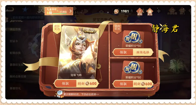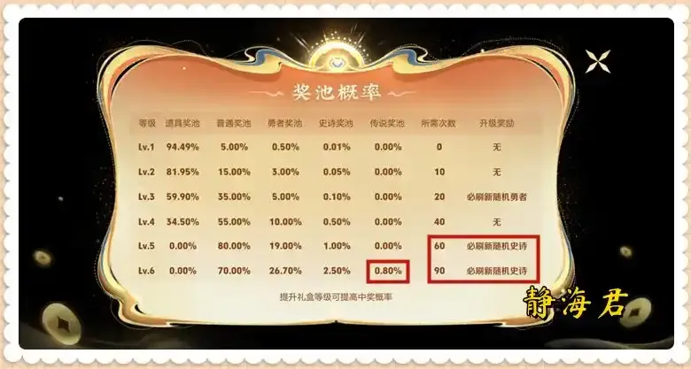 100个人里,有68个人抽不到传说夸奖。也正因为云云,我才说130次抽不到传说也是一件非常正常的事变。 革新灵宝墟市时的紧张本领但是,根据以往的履历,总是会有一部门玩家在215次之后,仍然刷不到传说,为什么会如许呢? ⑴第一个革新本领 为什么有部门玩家在215次之后,仍然刷不到传说呢?这里就涉及到一个革新顺序的标题。不少小搭档有个坏风俗,喜欢三个奖池换着刷,随处碰运气,如许实在是一件非常错误的事变。 根据小王公布的奖池概率,在90次(礼盒6级)之前,刷到传说夸奖的概率为0,以是准确的革新顺序应该是:
