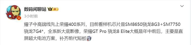 此前网间曾爆料,光彩新一代数字系列手机将会内置超7000mAh的电池,并配备金属边框,而且有望与光彩GT Pro系列一起在上半年发布。日前,有数码博主还爆出了这两个系列新机的核心性能、影像和续航等亮点设置。由此看,光彩数字系列新机应该来自光彩400系列,该机仍将主打影像亮点。而光彩GT Pro则主打直屏长续航旗舰性能机。两个系列新机定位显着更精准。 日前,数码博主 @数码闲聊站 爆料称,“耀子中高端线先上光彩400系列,现在看样机芯片是SM8650骁龙8G3+SM7750骁龙7G4*,全系新大底影像,光彩GT Pro 骁龙8 Elite大概是年中前后,主要是直屏超大电池方案,补齐前代短板”。由此来看,光彩对于数字系列和新独立的GT系列机型的定位越来越明确了,数字系列就是主打旗舰级影像,GT系列则主打旗舰级性能。 此前,数码博主 @旺仔百事通 和 @厂长是关同学 曾连续爆料称,光彩旗下的GT Pro和新数字系列都会在本年上半年发布,其中数字系列将会内置超7000mAh的电池,并配备金属边框等。而根据光彩手机的新机发布节奏来看,光彩GT Pro有望于四月份左右发布。光彩数字系列(大概率是光彩400系列)则有望于五月尾发布,以此来赶上每年的618活动,届时在市场中的销量,应该会有不错的增长。 根据现在的传闻来看,光彩GT Pro新机正面大概会接纳1.5K分辨率的旗舰级国产直屏,支持120Hz革新率和高频护眼调光技术和超声波指纹解锁,以此来增补光彩GT尺度版所带来的遗憾。性能方面将搭载高通骁龙8至尊版处置惩罚器,接纳LPDDR5X和USF4.0存储组合,再加上Turbo X技术和12GB运行内存起步,性能上会得到很好的开释。续航方面有望内置超6000mAh电池,外观方面将升级为金属中框,颜值和手感应该都会不错。 根据爆料,光彩400系列则应该会连续上代的包罗光彩400、光彩400 Pro以及旗舰级的光彩400 Ultra等的机型计划,除了强大的影像设置之外,该系列新机同样会到场金属中框,再加上NFC、红外、双扬声器、X轴线性马达等特性不会缺席,以及核心设置上应该也会举行肯定程度的迭代。对于光彩数字系列有等待值的用户,完全可以放心,光彩400系列的影像和颜值很少令用户扫兴,这次连续航也补上了。 |