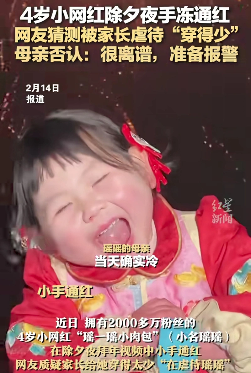 现在的网红不分年事巨细,假如是有自主意识的大人还好,但是作为一个不懂事的孩子,背后是否存在不为人知的故事和脚本? 克日,话题“两万万粉丝小网红母亲回应摆拍质疑”引发争议,这个年仅4岁的小女孩是否属于“被迫业务”引起了各人的质疑和讨论。 变乱的起因是网红“瑶一瑶小肉包”发布了一条视频,小女孩和小男孩一起走在路上,厥后小男孩忽然把小女孩绊倒,小女孩在地上哭得非常可怜,然而妈妈却在旁边一边拍视频一边高声笑。 有网友品评小男孩的举动过于伤害,而且指责这位母亲的做法,小女孩的母亲随即复兴道:“前次如许没拍到,说让这个轻轻地弄,但是小孩不会是我教的”。 这话听着多少有些别扭,好像背后有人辅导似的,因此不少网友开始质疑他们是为了流量而故意摆拍。 在别的一条视频中,有网友再次发现可疑之处。小女孩在户外穿得非常单薄,小手被冻得通红通红,眼里似乎还流着眼泪,好像并非心甘甘心的样子。 究竟“瑶一瑶小肉包”这个账号拥有两千多万粉丝,随便拍拍视频接接广告就能得到可观的收入,也难怪网友们会多想。 实际上账号“瑶一瑶小肉包”已经赚了不少钱,其报价为1-20秒的广告40万元,21-60秒的广告50万元,60秒以上的广告55万元,近三个月已经累计发布6条广告,总收入或已高出240万元。 有业内人士指出,视频中大概存在品牌方指定的内容,而且涉及摆拍。实在这也不难明确,哪有那么多凑巧恰当品牌方广告的一样平常生存视频,编造脚本把视频拍成广告不无大概。 对于诸多质疑,小女孩瑶瑶的妈妈有话说,称孩子天生手和脸就比力红,拍摄除夕夜拜年视频时穿得也不少,否认荼毒孩子传言,而且还提出预备报警。 实在想知道原形非常简朴,只需问问瑶瑶就可以了,不外如许做似乎不太符合,吓坏了小孩子可欠好。 末了盼望瑶瑶能够和其他小孩一样,早日开始正常学习正常生存。而瑶瑶的妈妈也没有向各人说谎,确实是至心疼爱本身的孩子。 总而言之,一个人的福报是有限的,任何时间都不要做亏心事,否则那些不应得到的产业,早晚都会更加归还已往。 |