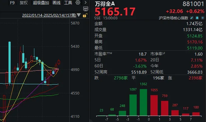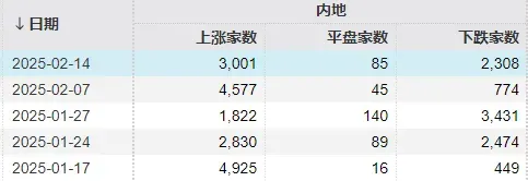 每经记者:肖芮冬每经编辑:彭水萍 刚已往的买卖业务周(2月10日~2月14日),也是进入蛇年后,A股首个完备的买卖业务周。 从多个股指表现来看,市场连续了前一周的涨势,团体收复了2025年元旦前后的跌幅,下图为万得全A的周线。 个股方面,超3000只个股本周收涨。从行业指数来看,影视院线、IT服务、通佩服务、软件开发、医疗服务、游戏等板块涨幅领先。 涨幅榜上,光线传媒本周大涨148%,可谓一骑绝尘;紧随厥后的就是多只DeepSeek概念股,后文将睁开来讲。 浙商证券以为,市场出现震荡向上的走势,主要宽基指数普涨。猜测后市,预计市场将沿着“惯性上冲-回踩‘黄金右脚’整固-继续上攻”的路径运行,短线追涨需审慎,但是中线仍旧看好,期间如遇可观回调,则视为上涨途中的“黄金右脚”,仍旧以多头视角审阅。 配置方面,发起投资人在中线回调信号出现之前保持现有仓位,而且在出现“黄金右脚”时继续增配。 行业板块方面,发起对恒生科技、盘算机、传媒等近期强势板块做出肯定调解,切换部分仓位至前期涨幅落伍的大金融板块。 别的,已往几年恒久下跌的医药板块近期出现活跃迹象,发起恰当关注已往几年跌幅较大、根本面企稳、股东增持的个股。 实际上,1月中旬以来,A股就开启了连续反弹,而近两周可以大概站上全部均线,又得益于大体雷同的逻辑。 没错,这个周末,市场关注度最高的依然是那两个关键词: DeepSeek,《哪吒2》。 在此前的推送中我们以为,二者的共通点恰幸亏于“中国的东西,锋利,震撼天下”。 停止本文成稿,《哪吒2》的票房正在打击环球影史票房榜前10——大概这一幕很快就能见到。 其背后公司光线传媒,一周劳绩5个20cm连板,年初迄今股价最大涨幅310.04%,最新市值已超千亿元,成为A股市值最高的影视院线上市公司。 开源证券在研报中将之称为国漫IP的“DeepSeek”时候。据其推算,光线传媒在《哪吒2》 票房分成比例约为19.6%-20.9%,以终极票房达120亿盘算,光线传媒有望实现23.6亿-25亿元分成收入。 浙商证券稍早的一则研报表现,《哪吒》票房大超预期,衍生品贩卖值得关注。而恰好,5年前上市的哪吒最贵周边,IP方与珠宝品牌“六福珠宝”联名的“乾坤圈”黄金手镯,近期再度翻火。 百亿票房撑起千亿市值——站在短线的角度,假如你以为这里有较多的“感情溢价”,那么必要思考和把握的就是: 同样的上涨逻辑,什么时间市场会渐渐冷静?该题材下其他分支(如衍生品)有无资金切换迹象? 另一方面,1月尾DeepSeek的横空出世,已然改写了国内外市场不少板块的走向。 这条更大的主线,最新演绎到了哪一步? 起首看直接相干的—— 1)周五(2月14日)医药股发作,源于多家医药公司接入DeepSeek,AI+医疗加速落地。 2)微信正灰度测试接入DeepSeek R1模型 部分人在微信首页上方的搜刮框,点开会出现“AI搜刮”功能,可选择“深度思考”,即DeepSeek R1模型。通过其搜刮时,会展示思考推理的流程。 连合此前百度公布大模型将开源,可见大厂之间的军备比赛还在加速。 3)机构麋集调研DeepSeek概念股 据梳理,1月14日至2月14日,获机构调研的DeepSeek概念股中,明确回复“DeepSeek” 相干业务情况的上市公司包括顺网科技、优刻得、每日互动、当虹科技、都城在线、天阳科技、创业黑马、中新赛克、北信源和智微智能,同期机构来访欢迎量分别为84家、76家、52家、48家、35家、31家、10家、4家、2家和1家。 再看同属AI方向的—— 4)杭州“六小龙”之一群核科技,率先向港交所提交上市申请 公开资料表现,深度探索(DeepSeek)、宇树科技、游戏科学、群核科技、强脑科技、云深处科技这6家公司被称为“杭州六小龙”,其总部都在杭州。 5)英伟达2月3日以来“十连阳” DeepSeek一度引发以英伟达为首的美国科技股的剧烈调解,不外从日K线来看,英伟达自2月3日起连收10根阳线(包括假阳线),现在股价靠近收复1月24日和27日之间的缺口。 6)英伟达公开文远知行持仓,文远知行股价一起暴涨至熔断 文远知行WeRide创建于2017年,是环球领先的主动驾驶科技公司,总部位于广州。周五,英伟达公布了2024年第四序度的13F持仓文件。文件表现,英伟达持有文远知行(WRD.US)173.86万股,持股范例为“SPONSORED ADS”。该消息导致文远知行股价暴涨,美股盘前一度涨超120%,盘初暴涨140%,盘中触发熔断。 停止收盘,文远知行涨83.46%,报收31.5美元,市值86亿美元。 7)戴尔靠近拿下50亿美元AI服务器大单周五涨约4% 以及,本周末尚有一些比较重要的消息,主要与大盘有关: 1月重磅金融数据出炉 央行数据表现,开端统计,2025年1月社会融资规模增量为7.06万亿元,比上年同期多5833亿元。1月份人民币贷款增加5.13万亿元。1月末,广义货币(M2)余额318.52万亿元,同比增长7%,狭义货币(M1)余额112.45万亿元,同比增长0.4%。 多位市场专家表现,本年1月份社会融资规模、人民币贷款、M2均保持公道增长,表现了“适度宽松”的货币政策基调。随着积极有为的宏观政策连续用力、更加给力、协同发力,我国经济增长的内生动能将不绝加强,助力我国经济进一步回升向好。 中国信达、东方资产、长城资产三大AMC同时划归中央汇金控股 专家以为,此次相干股权划归汇金,旨在通过股权调解优化国有金融机构的治理布局,强化国有资源的会合管理和资源整合本领。未来,AMC将进一步聚焦于不良资产处置和金融风险化解,回归政策性职能。 上交所召开指数