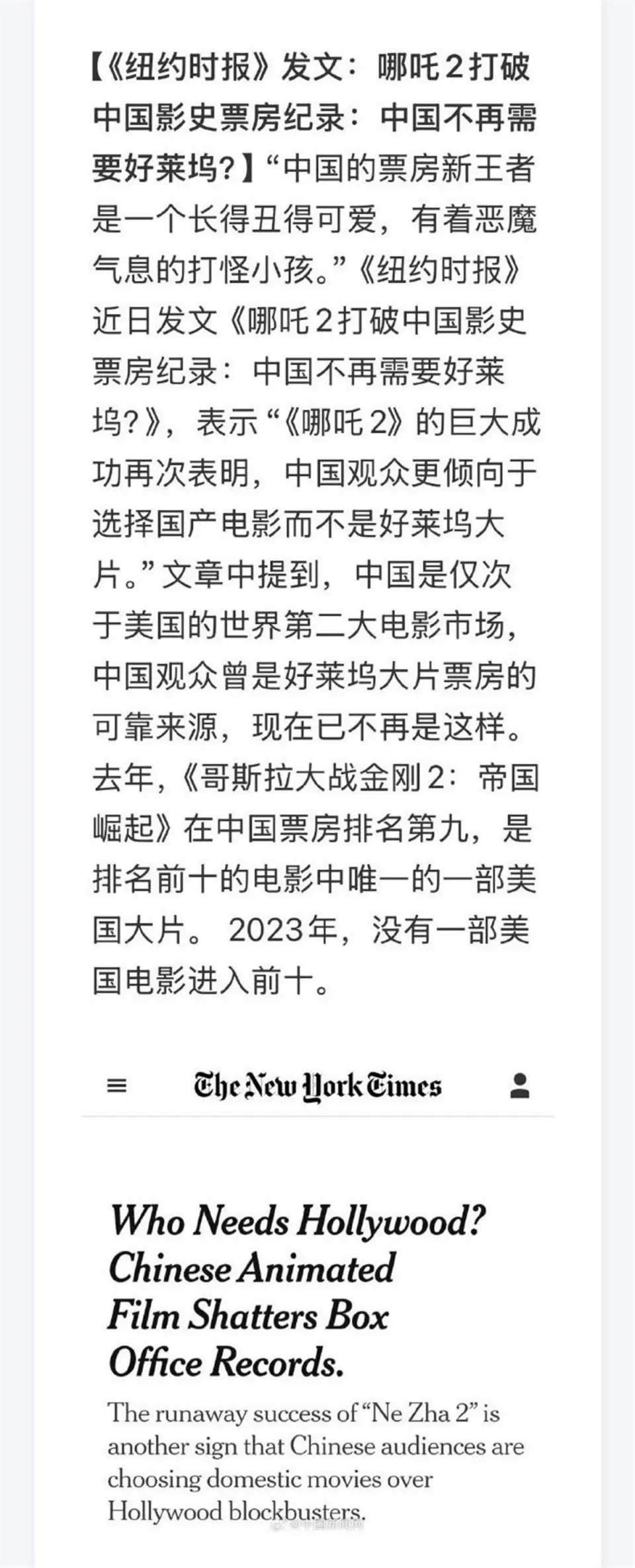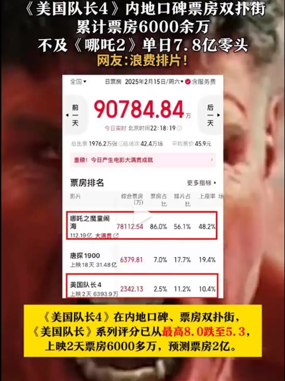 极目消息品评员 屈旌 作为2025年首部登岸大银幕的漫威影戏,《美国队长4》2月14日上映,零点场就涌入了不少漫威迷,停止2025年2月15日晚,美国队长4上映两天累积票房6800余万元,不及哪吒2单日7.8亿元的零头。 如今,《美国队长4》首波口碑已出,高频词是“无聊”。许多观众体现,“全片写满了摆烂和敷衍了事”“果然《复联4》之后再无漫威”“漫威复兴梦碎”,等等。(据2月16日中国青年网) 《美国队长4》被视为曾横扫环球票房的“漫威宇宙”复兴的关键之作,《哪吒2》则是在这个春节档狂破记录,屡创古迹,正打击环球票房榜前十的国漫之光,两者狭路邂逅,不光是影戏票房数字的比力,更是国产神话小英雄与好莱坞超等英雄的短兵相接,是中美文化软气力在影戏市场的一次正面比武。 从如今的战果来说,《哪吒2》无论从票房照旧口碑可以说都是完胜。票房就毋庸赘言了,《哪吒2》的体现无疑是碾压性的。单从观众反响来说,《哪吒2》以豆瓣8.5分、IMDb8.3分的高评价,赢得了海表里观众的广泛赞誉,就连奥斯卡评委都惊叹不已,等待在奥斯卡奖为饺子投票。而《美国队长4》豆瓣评分如今只有5.4分,在IMDb上首日评分仅为5.8分,创下该系列开分最低分,无疑袒露了其在演员选择、故事叙述、脚色塑造等多方面存在的题目。只能说,全天下观众的眼睛都是雪亮的,观众的审美和等待都在提升,作品如果不能一连创新和进步,就肯定会在市场的狂流中栽跟头。 《美国队长4》在中国市场遭遇滑铁卢,实在并不令人不测。此前,《纽约时报》等媒体已经提前打了“防备针”,撰文发问:“中国不再须要好莱坞?”并在文中指出,“《哪吒2》的巨大乐成再次表明,中国观众更倾向于选择国产影戏而不是好莱坞大片。”这实在照旧在说,中国观众靠着人多钱多,把《哪吒2》的票房抬起来了,看似夸《哪吒2》锋利,实则依然体现出惯有的傲慢与私见。 中国观众对于好莱坞大片之类的外来文化向来是兼容并蓄,海纳百川的。《复仇者同盟4:终局之战》在中国本地市场的总票房到达了42.38亿元人民币,是中国影史入口片票房总冠军。《纽约时报》本身都承认,中国是仅次于美国的天下第二大影戏市场,中国观众曾是好莱坞大片票房的可靠泉源。 即便此次《美国队长4》把观众缘很好的克里斯·埃文斯换掉,光从选角而言就“一脸扑相”,上映首日也有30%左右的排片,只不过由于实在卖得欠好,当天下战书日排片占比降落到了11.5%,上座率也只有10.4%左右,人均场次只有11.9人,只能说,片子没拍好,观众不满意,谁来都欠好使。 相比较起来,只管《哪吒2》在北美预售上座率超90%,黄金场次售罄,在北美市场的排片可以说是相当地“虐”,排片量还不足《美国队长4》的5%,而且据报道,未来至少一全面美无《哪吒2》IMAX排片,说拒绝是谁在拒绝,说私见又是谁有私见。 随着中国影戏工业的快速发展,日益成熟,观众的审美咀嚼也日益提升,单纯的殊效和大局面已难以满意中国观众的多元化需求,各人不再盲目追捧好莱坞大片,而是更加注意影戏的艺术品质、创新本领和文化内在。 《哪吒2》的乐成,正是由于把握住了这一趋势,不光在视觉效果上到达了国际一流程度,用最今世的技术显现了最瑰丽的东方文化,更在故事叙述、脚色塑造、文化表达等方面做到了深入浅出,找到人类情感的“最大公约数”,触动了各种范例观众的情感共鸣。这种对传统文化的深入明白探寻和创造性转化,不光赢得了国内观众的喜好,也为海表面众打开了“瞥见中国之美”的窗口。相比之下,《美国队长4》叙事陈旧、故弄玄虚,脚色魅力不足,当政治隐喻高出于故事逻辑,本就对“美国超等英雄救济天下”这一叙事看厌了的观众,更加会感到审美疲惫。 恒久以来,好莱坞在环球影戏产业中占据了绝对的话语主导权,环球影史票房榜前十名满是好莱坞大片,这固然得益于其影戏工业的成熟和雄厚的制作力量,但也离不开强势的市场把持和文化输出。《美国队长4》劳绩一片无聊之声,不光是漫威系列的堕落,也是整个好莱坞陷入颓势的缩影。比年来,好莱坞着迷于“政治正确”,叙事陈旧“吃老本”,技术上裹足不前,立意上俗不可耐,观众不爱看也是很正常的。中国观众拒绝的不是好莱坞,而是粗制滥造,缺乏诚意的圈钱影戏。 如今有不少网友都说,《哪吒2》的冲榜历程是在“升国旗”,也简直有许多观众二刷,三刷、四刷,就是为了体验创造“影史古迹”的参与感,表达对于中国影戏朴素热切的等待,希望就此让《哪吒2》活着界影戏舞台上,踏出一条属于中国传统文化、中国动画产业的前路!但这统统的条件,依然是影戏本身质量过硬,能让人享受视觉盛宴,感受情感荡漾,于传统文化的感化之中,叫嚣出“给我破”的期间精力,触动了民族自大与文化认同的心弦! 优秀而深刻的影戏作品,无论在哪个市场,都能赢得观众的喜好和承认。智慧的中国观众会用实际举措证明,我们会为好影戏掏钱,也能义正辞严地为我们本身的佳作摇旗叫嚣! (泉源:极目消息) 更多出色资讯请在应用市场下载“极目消息”客户端,未经授权请勿转载,欢迎提供消息线索,一经接纳即付报酬。24小时报料热线027-86777777。 |