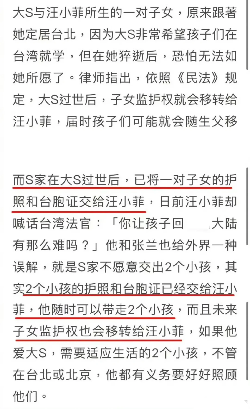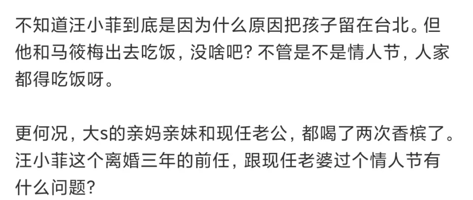 克日有网友在北京一家高级餐厅偶遇汪小菲和马筱梅同过情人节,博主称在吃到一半的时间遇到了汪小菲和他的老婆,对此博主感到非常震惊,没想到两人这么快就回北京了。 汪小菲身着玄色西装,脚踩玄色皮鞋,身材匀称、身体挺秀,整个人的状态和精气神都很不错。一旁的马筱梅则身穿米白色风衣,扎着高马尾,举手投足间都非常优雅。两人走路的时间全程牵着手,看起来非常幸福甜蜜。 别的该博主还在批评区复兴网友,称汪小菲已经走出了大S病逝的阴霾,和现任马筱梅一起过情人节非常快乐和幸福。 对于汪小菲扬弃孩子和马筱梅同过情人节的举动,批评区两极分化非常严肃。一部门网友以为汪小菲的深情人设崩塌,在得知大S离世后,汪小菲还一副要死要活的样子,账号被封禁后就立马撇下孩子,带着马筱梅回北京了,现在更是快快乐乐地过上情人节了,真是多一天都装不下去了。 另一部门则以为,不知道汪小菲是出于什么缘故原由把孩子留在台北,但是他和马筱梅出去用饭则无可厚非吧,不管是不是情人节,人家都要出去用饭呀。 而且在大S离世后,S家亲朋团都喝了两次香槟了,汪小菲只是大S的前夫,连家人都算不上,他和现任马筱梅在情人节一起吃顿饭又有什么题目呢? 在大S离世后,汪小菲的精力近乎瓦解。不光第一时间换上了纯玄色头像惦记大S,乃至多次在交际平台高调告白大S“老婆,我好想你”。在被网友怒怼是装货后,汪小菲也只是复兴称,我装,我不对,死的人应该是我,谢谢你骂我,谢谢你爱熙媛。 乃至还被媒体拍到淋雨回家,在台北街头跪拜大S的照片,大S病逝后汪小菲做的全部“蜜意举动”都被媒体精准捕获,此时的他就像一位后知后觉的“蜜意好夫君”。 然而还没蜜意几天,台媒就曝光汪小菲和现任老婆马筱梅在元宵节前夕抛下子女偏偏回北京了,相较于之前的大张旗鼓汪小菲这次反而非常低调,疑似深情人设崩塌。 律师指出,在大S离世后,子女的监护权会直接转移给生父汪小菲,届时两个孩子大概会和汪小菲一起回到北京生存。 大S过世后,S家已经把两个孩子的护照和台胞证都交给汪小菲了,他可以随时带走两个孩子,在将来子女监护权也会转移给汪小菲。 孩子才失去妈妈,正是必要爸爸安慰和关心的时间,此时汪小菲却撇下两个孩子不管确实有点说不已往了。 不外也有小道消息称,汪小菲夫妇回北京是为了给两个孩子联系贵族学校,究竟找学校也必要一段时间,信赖马筱梅会善待小玥儿和小箖箖的。 在大S过世后,汪小菲忙前忙后也帮了不少忙,不否认他曾经确实做过许多荒诞的变乱,但一切都随着大S的拜别而尘归尘,土归土了。但眼下最紧张的照旧要好好抚养两个孩子,让他们在布满爱与包容的环境中逐步长大! |
