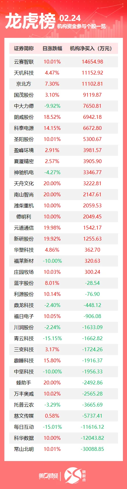 美股涨跌不一周一,美股涨跌互现,投资者等候芯片巨头英伟达的业绩,并观察特朗普最新关税主张的影响。 停止收盘,道指涨33.19点,涨幅0.08%,报43461.21点,纳指跌1.21%,报19286.92点,回吐年内全部涨幅,标普500指数跌0.50%,报5983.25点。 半导体、硬件板块跌幅居前,纳微半导体跌超8%,博通跌4.9%,英伟达跌3.1%,美光科技跌超3%,高通、AMD、英特尔跌超2%;保险、有色金属、贵金属板块走高。 大型科技股多数下跌。特斯拉、Meta跌超2%,亚马逊、微软跌超1%,苹果微涨;伯克希尔哈撒韦B类股收涨4.2%,创11月以来最佳单日表现。 其他个股方面,伯克希尔大涨超4%,耐克涨4.9%,星巴克涨1.3%。 中概股普跌,纳斯达克中国金龙指数跌5.24%。老虎证券跌超13%,阿里巴巴、哔哩哔哩跌逾10%,富途控股跌逾9%,拼多多跌近9%,京东、新东方跌超7%,爱奇艺跌近7%,网易、理想汽车跌超4%,百度跌近4%。 周一,中长期美债收益率继承承压,与利率预期关联密切的2年期美债跌2.6个基点至4.166%,基准10年期国债收益率跌2.8个基点至4.390%,革新年内低位。 数据方面,个人斲丧付出指数PCE(美联储首选的通胀指标)将于周五公布,这大概有助于市场判定美联储今年初次降息的机遇。联邦基金利率期货显示,美联储将在今年3月、乃至上半年保持利率不变。 财报也将成为焦点,家得宝和劳氏将分别于本地时间周二和周三发布的红利报告将让投资者更好地相识美国斲丧者的状况,英伟达于本地时间周三晚上的红利报告更具影响力。 国际油价小幅走高,WTI原油近月合约,布伦特原油近月合约涨0.47%,报74.78美元/桶。 国际金价再创新高,纽约商品交易所2月交割的COMEX黄金期货涨0.35%,报2947.30美元/盎司。 本日精选 中美俄均投下同意票!团结国安剖析通过涉乌决定 2025年2月24日是俄乌辩说发作三周年的日子。本地时间2月24日,团结国安剖析对美国提出的关于乌克兰标题的决定草案进行表决。表决中,中国、美国与俄罗斯在内的10个国家投同意票,5票弃权,决定获得通过。据相识,美国在安剖析提出的决定与早些时候在联大提出的决定草案同等,即呼吁灵敏竣事辩说,并进一步敦促乌克兰和俄罗斯之间实现长期平静。 2月24日,立陶宛、拉脱维亚、爱沙尼亚、西班牙、芬兰、丹麦、冰岛、挪威、瑞典、加拿大等国向导人及欧盟向导人连续抵达乌克兰都城基辅。据乌克兰总统泽连斯基2月23日在记者会上说,37国向导人将到场在基辅举行的“乌克兰-北欧-波罗的海平台”峰会,此中13国向导人到场,24国向导人线上到场。他届时将发起欧洲搭档尽快就乌克兰安全保障标题召开单独集会。 国家知识产权局:多方恶意抢注DeepSeek商标被驳回 2月24日,国家知识产权局发布关于依法驳回抢注“DEEPSEEK”等相干商标注册申请的告示。告示指出,近期,杭州深度求索人工智能根本技能研究有限公司研发的DeepSeek人工智能大模子在全球范围内引发了广泛关注。个别企业和天然人以社会公众广泛知悉的人工智能大模子名称“DeepSeek”或其Logo图形,向国家知识产权局商标局提交了商标注册申请,个别署理机构涉嫌提供非法服务,具有显着“蹭热门”、谋取不当长处的意图。 财经要闻 2月24日下战书,国家主席习近平应约同俄罗斯总统普京通电话。普京先容了俄美打仗最新情况和俄方在乌克兰危急标题上的原则立场,表示俄方致力于消除俄乌辩说根源,达成可持续和长久的平静方案。习近平夸大,乌克兰危急全面升级之初,我就提出办理危急的“四个应该”等根本主张。客岁9月,中国同巴西一道,会同部门全球南边国家创建乌克兰危急“平静之友”小组,为推动危急政治办理营造氛围、积聚条件。中方乐见俄罗斯及有关各方为化抒难机作出积极积极。 2月24日,交际部发言人林剑主持例行记者会。有记者提问,为促进乌克兰平静作出积极贡献,中方是否有新的操持或倡议?林剑表示,中方在乌克兰危急标题上的立场是一向的明白的,危急全面升级以来,中方不停同有关各方保持沟通,致力于为止战凝结共识,为和谈铺路搭桥。中方将始终刚强站在平静一边,秉持客观公正立场,继承同国际社会一道,为推动危急政治办理发挥创建性作用。 2月24日,交际部发言人林剑主持例行记者会。有记者提问,美方发布有关投资政策的备忘录,加严对中国赴美投资的安全审查。中方对此有何品评?林剑表示,中方对此猛烈不满,坚决反对,已向美方提出严正会商。美国加严对中国赴美投资的安全审查,严重打击中国企业对美的投资信心,粉碎的是美国本身的营商情况,加码限定美国对华投资,是人为干预美国企业的自主决定,扭曲两国的投资往来。美国将中国企业和中国市场拒之门外,最终侵害的是美国自身的经济长处和国际信誉。中方敦促美方服从国际投资商业规则,恭敬市场经济规律,停止将经贸标题政治化、武器化,停止侵害中国的正当发展权利。中方将采取须要本领,坚决维护自身的正当权益。 农业农村部克日印发《落实中共中心国务院关于进一步深化农村改革踏实推进墟落全面振兴工作摆设的实验意见》,摆设8方面40项具体工作办法,费尽心机促进农业增效益、农村增活力、农夫增收入,踏实推进农业农村高质量发展。 2月24日,证监会主席吴清在《新型工业化》发布题为《充实发挥资源市场功能 更好服务新型工业化》的文章,此中提出,要充实发挥数据要素的赋能作用,推进数字经济与实体经