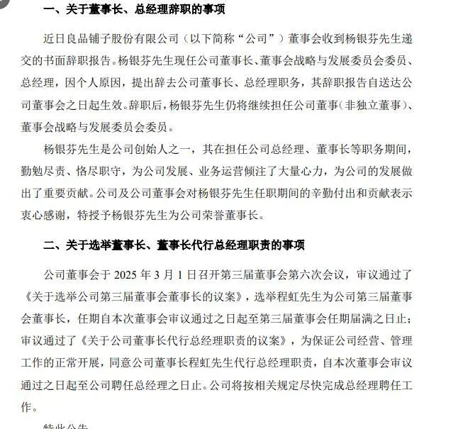 不敷两年,良品铺子再度换帅。 3月3日晚,良品铺子发布公告称:原董事长、总司理杨银芬因个人缘故起因辞任,经董事会全票表决通过,由董事、战略与发展委员会调集人程虹接任董事长并代行总司理职责。 有业内人士分析,良品铺子此次“换帅”,背后缘故起因复杂,“业绩压力大概是促使公司调解管理层的告急因素之一。” 良品铺子客岁业绩预亏,为上市以来初次年度亏损 作为良品铺子连合创始人,杨银芬自2010年参加后推动公司从地区品牌发展为天下性零食巨头,期间还提出“高品质、高颜值、高体验”品牌理念,并于2020年在A股上市。 杨银芬历任董事、副总司理、副董事长等职位。此次辞职后,杨银芬还将继负担任良品铺子董事及战略与发展委员会委员,同时被授予“荣誉董事长”,以表扬其任职期间对公司发展作出的告急贡献。 2023年11月,杨银芬接任良品铺子董事长,彼时正值量贩零食业态打击加剧、消耗理性化趋势显现、行业代价战全面升级的关键节点。 “稳固,我们真的有可能失去在牌桌上的资格。”面对市场剧变,杨银芬上任后的第一把火,便“烧”向了代价。 在当选董事长两天后,杨银芬便发布内部信,公布启动巨大改革,实验17年来初次最大规模贬价,300款产物平均贬价22%,最高降幅45%,集中在资本优化但不影响品质以及复购率高的零食上。 但改革成效似乎并不显着。2023年,良品铺子实现业务收入约80.46亿元,同比下滑14.76%;归属于上市公司股东的净利润约1.8亿元,同比下滑46.26%。别的,2024年上半年财报表现,公司营收同比下滑2.52%,扣非净利润暴跌93.97%。整年业绩预报更披露预计亏损2500万-4000万元,为上市以来初次年度亏损。 良品铺子方面将业绩的亏损表明为:公司2024年仍依照“贬价不降质”方针,进一步在门店渠道对部门产物实验贬价战略,并在产物结构上举行了调解及新品类的尝试,售价下调及产物结构的调解影响了公司的毛利率,因此公司的净利润表现为降落。 然而,不佳的业绩直接导致了资源信心不稳。2024年5月,两大股东宁波汉意和达永有限公布合计减持6%股份,引发市场对管理层信心的担心。本年2月,达永有限再度公布因自身资金需求筹划减持,减持股份不凌驾1203万股,即不凌驾良品铺子总股本的3%。 二级市场上,良品铺子的股价也“跌跌不休”。公司股价从汗青高点86.29元/股跌至3月4日收盘时12.82元/股,跌幅超85%。 新官上任之火又将烧向那边? 重重挑衅之下,良品铺子再次求变。 公告表现,接替杨银芬的是程虹。接任者程虹与良品铺子的渊源始于2019年上市筹备期,其恒久专注企业“高质量发展模式”研究。 据报道,2022年9月,程虹担任良品铺子非独立董事;2024年1月,担任良品铺子战略与发展委员会调集人期间,深入谋划一线,完成对良品铺子供应链体系门店终端模子、服务质量、谋划模式转型战略、品质价值观的谋划战略等方面体系研究和评估,在公司谋划中得到了连续地应用。 值得一提的是,公开资料表现,程虹另一身份为武汉大学质量发展战略研究院院长,在质量管理和战略规划范畴具备深厚学术配景。 其双重配景或为企业应对行业新趋势提供支持——当前零食行业正从“代价导向”转向“质价比竞争”,这与程虹主导的质量战略研究高度契合。 中国食品财产分析师朱丹蓬以为,中国休闲零食已经步入一个内卷化、专业化、规模化、资源化的节点,程虹曾参与到良品铺子的门店管理、改造、升级以及产物矩阵的规划中。就程虹的专业度来说,比原有的管理团队专业度要高,知识结构更好,认知见地更高,可以匹配良品铺子下半场的竞争需求。 随着程虹执掌帅印,良品铺子的战略天平或将从代价战的硝烟中转向更深层的质量革命。能否让老牌零食巨头在质价比期间重获生气,大概取决于新管理层能否在质量战略与贸易效益间找到精准的平衡支点。 潇湘晨报辣椒财经记者李轩子 报料、维权通道:应用市场下载“晨视频”客户端,搜索“报料”一键直达;或微信添加报料客服:xxcbcsp;或拨打热线0731-85571188。如需内容互助,请拨打政企服务专席19176699651。 |