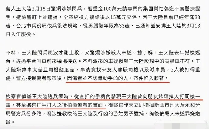 继逃兵役被抓后,33岁的艺人王大陆又被曝出的惊天大瓜。前次王大陆因伪造医疗证实逃避兵役被抓,交了15万保金才被开释,原来3过几天就要去服兵役了,没想到又闹出大事。 根据台媒报道,王大陆因“杀人未遂”已被警方移送检方侦办,现在案件还在进一步的观察中。 根据台媒报道,在客岁3、4月份王大陆返台的时间,通过平台叫车服务打到了一辆特斯拉。结果平台派来的车不符合王大陆的要求,以是他事后挑拨一位友人痛殴司机和派车专员,动手相当横暴,把两人打得满身是伤、半死不活。 别的王大陆还非常不满司机绕路的举动,在到达目的地后,王大陆发现钥匙落在了车上,就想伸手去车内取钥匙。但因为特斯拉没有车把手,王大陆多次开门无果就开始猛捶车窗,这让司机非常愤怒,于是乎两人就发作了猛烈的辩论。 事后王大陆还找到了富二代友人抱怨,友人还因此找人痛殴了司机,造成司机受伤,还把整个施暴过程都录了下来。 在看到王大陆殴打司机和派车员的消息后,网友们对此南北极分化非常严重,一部分网友表示不会开特斯拉的门着实太可笑,打司机有大概,但是去打派单员就有点匪夷所思了,怎么找到的,那里有那闲工夫。打人变乱应该是真的,只是罪名夸大了。 另一部分网友则表示,王大陆的长相就有点暴戾,好比柯震东、李威、王大陆等人都有一些共同点,吊梢眼,面相带邪气,尚有点似笑非笑的感觉。 司机被打后也报了案,但并不认识行凶者,以是案子始终没突破。近来王大陆因伪造文书,逃兵役而被逮捕观察,警方在查扣手机的过程中偶然间发现王大陆和朋侪夸耀找人打司机的谈天纪录,里面尚有许多殴打行凶的画面。反面警方顺藤摸瓜,终于找到了这位游姓施暴者。 在法警室公告的大荧幕上,也可以看到王大陆的名字,案由就是台媒报道的杀人未遂, 在王大陆打人施暴的消息传出后,尚有媒体专门致电王大陆经纪人扣问相干细节,一开始经纪人的电话出现出无人接听的状态,连发过去的短信也是已读未回。在过了半小时之后,经纪人又发消息回应,“辛劳大家,统统都在相识当中,谢谢”,也算是非常低调地回应了王大陆杀人未遂的消息。 王大陆因为《我的少女期间》爆火出圈,其中影片中痞痞帅帅的形象也劳绩了许多诚实粉丝,现在连续不断地被曝出丑闻,势必对他的正面形象有很大的影响。 因为逃兵役的丑闻已经让王大陆的古迹遭碰到了打击,现在又被曝光殴打司机,台媒用的是“杀人”而非“打人”就已经能看出标题的紧张性了,看来司机和派车员一定伤得不轻。公众人物在享受观众追捧的同时,也要洁身自好、谨言慎行,渴望王大陆能早日改过自新、主动负担错误。 |