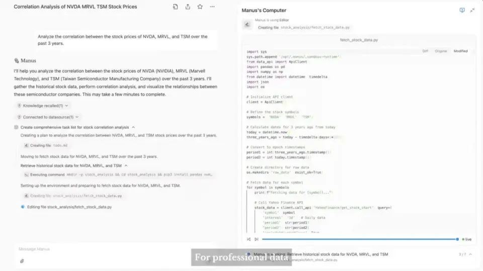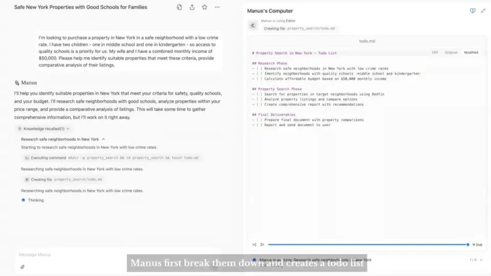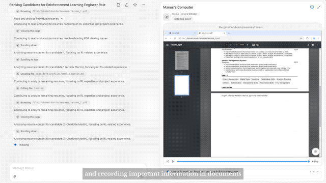 3月6日上午,A股三大指数团体高开高走,制止午间收盘,沪指涨1.05%,深成指涨1.75%,创业板指涨2.15%。 从板块来看,AI应用方向团体爆发,酷特智能等多股涨停。算力概念股持续走强,海南华铁等涨停。呆板人概念股反复活泼,杭齿进步等多股涨停。 港股大爆发,制止发稿,恒生指数涨2.67%,恒生科技指数涨4.87%。 科技股大涨,快手涨超15%,阿里巴巴涨超7%,腾讯控股涨超5%。 消息面上,科技圈被一个名为Manus的产物刷屏了,全网都在要邀请码。 日前,来自中国的创业公司Monica正式对外发布通用型AI Agent产物Manus。据团队介绍,Manus在GAIA基准测试中取得了SOTA(State-of-the-Art)的结果,显示其性能逾越Open AI的同条理大模子。 据悉,这是环球首款真正意义上的通用AI Agent,从官网展示的案例可以看到,它能够独立思索、规划并实验复杂任务,直接交付完备结果。官方宣称,Manus不仅仅是一个只会谈天的对话式AI工具,而是一个真正的自主智能体(Agent)。 从介绍来看,相较于现在的大模子产物,作为通用型Agent,Manus定位于一位性能强大的通用型助手,对于用户不仅仅是提供想法,而是能将想法付诸实践,真正办理题目。 而Manus的在拉丁文里象征着“手”。也就是说,知识不仅要在脑筋里,还要能用手实验。这正是Agent和AI Bot(谈天呆板人)产物的本质进阶。 从发布的视频演示来看,Manus在接到用户指令后可以直接操纵电脑完成一系列报告撰写、表格制作等工作,并在末了导出符适用户需求的产物。 而且,差别于此前各类功能相对简单的人工智能助手,Manus拥有超强学习本领温顺应性的“数字大脑”,不再范围于单一任务,而是能够明确复杂指令、自主学习、跨范畴协同,真正像人一样思索和办法。 与Manus同步出圈的还有一段长达四分钟的演示demo。在这些案例中Manus完全自主地完成从规划到实验的全流程,展示了真正的Agent本领。 比方说,起首从一个常见的人力资源任务——筛选简历开始。 演示一开始就放了个大招,官方向Manus发送了一个包罗10份简历的压缩文件,Manus能像专业雇用职员一样高效工作。 它会先解压文件,然后逐页浏览每份简历,并记载告急信息。Manus还能异步处置惩罚文件,这意味着你可以随时关闭电脑,等任务完成后,它会通知你。 当然,在这个过程中,你也可以随时给它新的指令。 接着,继续向Manus上传5份简历。在认真阅读了全部15份简历后,Manus 给出了排名发起,并提供了候选人资料和评估标准作为参考。 这还没完,我们还可以让Manus天生电子表格。 由于Manus具有知识和影象本领,所以下次实验类似任务时,它会直接以电子表格的情势交付结果。 另一个演示案例中,团结家庭收入情况和孩子的上学要求,让Manus在纽约筛选一个安全、犯罪率低的社区,并购买符合标准的房产。 面临这类复杂任务,Manus同样是井井有条地将其拆解为多个步调,并创建详细的待办清单。 搜索并阅读关于纽约最安全社区的文章。 研究纽约的中学情况。 编写 Python 步伐来盘算预算。 基于预算,在房地产网站上筛选合适的房源。 整合全部信息,撰写详细报告并整理干系资料。 转场到第三个案例,Manus摇身一变成了专业的股票分析师。 让其分析三家公司在已往3年的股票代价之间的干系性,Manus可以通过API 访问权势巨子数据源。在验证数据后,它开始编写用于数据分析和可视化的代码。 在完成数据分析和可视化后,Manus也能基于这些数据创建一个网站。经用户的授权后,还能将网站摆设至线上,并提供了一个可供分享的链接。 有网友实验用Manus做了一个小米Su7的PPT,指令很简单:帮我做一下介绍小米Su7十页的PPT。 Manus还夺目嘛?根据官方网站展示、以及用户自觉展示的利用用例,极客公园整理: 观光规划:不仅整合观光信息,还为用户创建定制观光手册。比方,为用户规划日本四月观光,提供个性化的观光建媾和详细手册。 教诲内容创建:为中学西席创建视频演示质料,表明动量定理等复杂概念,资助西席更有效地讲授。 保险政策比力:创建清晰的保险政策比力表,提供最佳决策发起,资助用户选择最适合的保险产物。 供应商采购:在整个网络中举行深入研究,找到最适适用户需求的供应商,作为真正公平的署理为用户服务。 财务报告分析:通过研究和数据分析捕捉市场对特定公司(如亚马逊)的感情变革,提供已往四个季度的市场感情分析。 创业公司列表整理:访问干系网站辨认符合条件的公司,并将其整理成表格。比方,整理YC W25批次的全部B2B公司列表。 在线市肆运营分析:分析亚马逊市肆贩卖数据,提供可操纵的洞察、详细可视化和定制策略,资助提升贩卖业绩。 据界面消息报道,Manus背后的首创人肖弘,毕业于华中科技大学软件工程专业。 毕业后,他一连创业,2015年创立夜莺科技,推出壹伴助手和微伴助手,服务超200万B端用户,获腾讯、真格基金等投资。 他还开发了一款号称All-in-One的AI助手产物Monica,最初以浏览器插件的情势推出。通过集成主流大模子(如 Claude 3.5、DeepSeek 等),Monica提供谈天、翻译、文案处置惩罚等功能。Monica早期以外洋市场为主,用户规模破百万,成为AI插件范畴头部产物。今年2月份,Monica的中文版已开启内测,现在免费向国内用户开放。该版本基于DeepSeek R1和V3模子打造,具备深度推理思索本领,并支持影象功能和及时联网搜索。 (声明:文章内容和数据仅供参考,不构成投资发起。投资者据此操纵,风险自担。