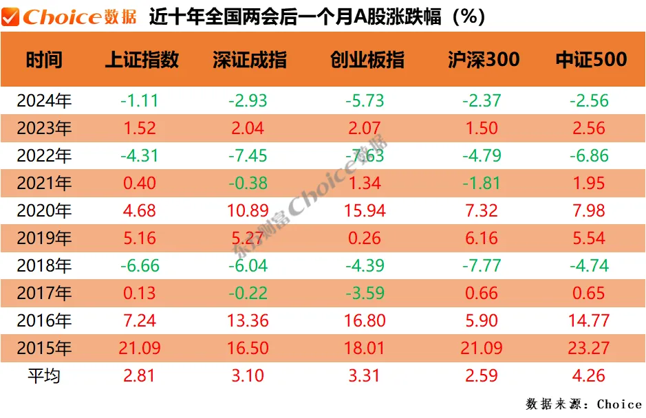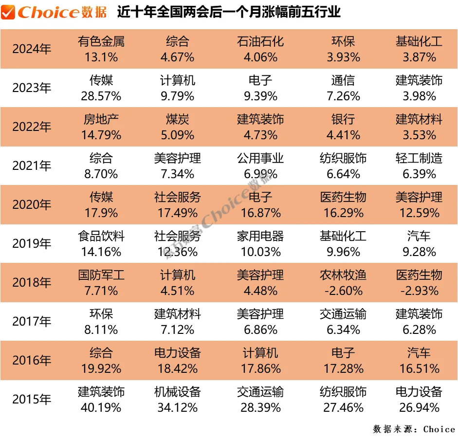 春节后,中国资产领涨环球,港股迎来技能性牛市,恒生指数、恒生科技指数均涨超10%。 随着两会的正式召开,市场走向怎样?复盘历史数据发现,近十年两会期间A股涨跌各半,但会后一个月涨势不俗。 两会期间A股表现 根据决定,十四届天下人大三次集会将于2025年3月5日在北京召开。政协第十四届天下委员会主席集会建议天下政协十四届三次集会于2025年3月4日在北京召开。 Choice统计,2015至2024的十年里,两会前一周A股重要指数涨跌各半。此中,上证指数6次实现上涨,4次下跌,上涨概率60%;创业板指、中证500上涨次数为5次,深证成指、沪深300上涨4次。 数据泉源:Choice;2020年天下两会召开时间是5月21日,不作投资保举 分行业来看,近十年31个申万一级行业中共9个行业在两会前一周匀称涨幅为正。医药生物以0.78%的匀称涨幅位居首位;紧随其后,综合行业匀称涨幅为0.62%;美容护理、轻工制造、电力装备、盘算机等行业上涨。国防军工、钢铁、煤炭、房地产、汽车等行业下跌。 数据泉源:Choice数据,不作投资保举 详细来看,2024年两会期间,电力装备以6.81%的涨幅居首;有色金属排名第二,涨幅为5.82%,排名第三至第五的是公用事业、石油石化和纺织服饰。近十年,医药生物、社会服务、美容护理等行业期间涨幅居前。 数据泉源:Choice,不作投资保举 两会后一月A股表现强势 相比集会期间,两会后一个月A股表现强势。此中,上证指数、中证500均7次实现上涨,3次下跌上涨概率70%;创业板指、沪深300上涨次数为6次,深证成指上涨5次。 从指数近十年匀称涨跌幅来看,两会后一月上证指数、深证成指、创业板指、沪深300、中证500均实现上涨,涨幅分别为2.81%、3.1%、3.31%、2.59%和4.26%。 数据泉源:Choice;2020年天下两会召开时间是5月21日,不作投资保举 分行业来看,近十年31个申万一级行业在两会后一月匀称涨幅全部为正。修建装饰以6.44%的匀称涨幅位居首位;紧随其后,社会服务匀称涨幅为6.41%;美容护理、医药生物、房地产、传媒、盘算机等行业涨幅凌驾4%。 数据泉源:Choice数据,不作投资保举 详细来看,2024年两会后一月,有色金属以13.1%的涨幅居首;综合行业排名第二,涨幅为4.67%,排名第三至第五的是石油石化、环保和根本化工。2023年涨幅前五的行业分别是传媒、盘算机、电子、通讯和修建装饰,涨幅分别为28.57%、9.79%、9.39%、7.26%和3.98%。 近十年,传媒、综合两大行业分别两次排名涨幅榜首位。 数据泉源:Choice,不作投资保举 积极看好两会行情 中金公司:历史上资源市场在两会前后大概表现相对积极,从历史数据来看,A股市场(上证综指)在两会前一个月和后一个月的匀称表现分别为2.8%和4.6%,港股(恒生国企指数)分别为1.6%和5.0%。2025年,政策预期将为市场提供信心,推动市场整体向上。 中国银河:当前全A指数市盈率估值处于历史中位程度,但相比海外市场来讲仍然处于偏低位置。天下两会的召开有望为A股市场投资结构提供进一步指引,A股市场迎来结构性估值重塑时机。配置方面,重点关注:(1)基于自主可控逻辑与发展新质生产力要求的科技创新主题。(2)扩大内需导向下的“两重”和“两新”主题。(3)继续看好安全边际较高的红利板块,重点关注央国企。 财通证券:此次两会期间,预计将迎来政策密集落地期,政策或将聚焦新质生产力、当代化产业体系构建、消耗及投资等领域,促进经济高质量发展。这些政策的出台将提振市场情绪,给予A股较好的支持。 华宝证券:2025年“春季躁动”行情中科技成长风格引领市场走强,但随着两会邻近,市场内部或迎来阶段性的风格切换。从“两会”行情的季候性特性看,从成长向稳固风格切换的概率较高,两会后“科技行情”仍有望再度上行,若科技板块阶段性调整,可适度积极,继续博弈3月份科技板块的“二次上行”时机,重点关注AI+方向。 免责声明 快速开通每天基金生意业务账户,当天开户当天可买基金! |