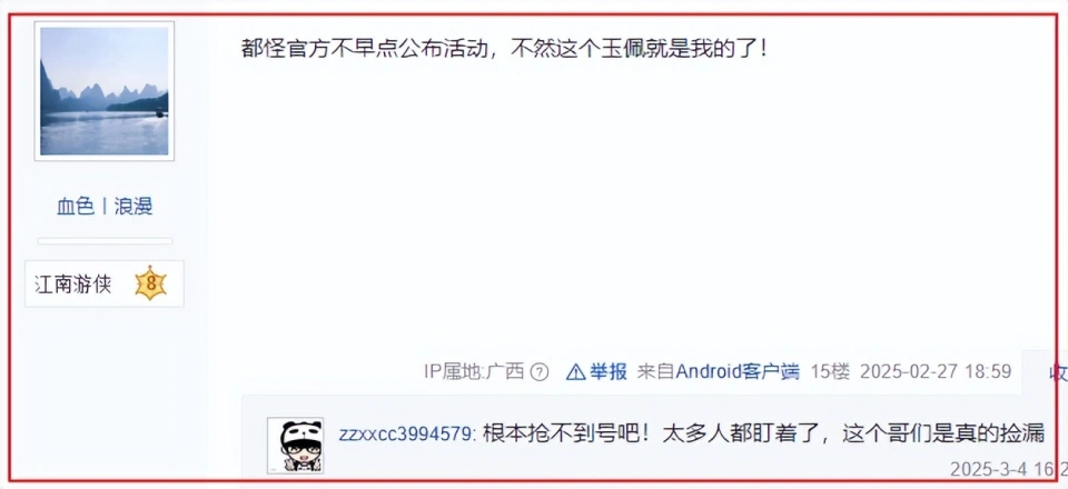提到网易旗下网游《逆水寒》,不停被不少网友以为是家里有矿才华玩的游戏,游戏里神豪们手持的顶级装备,没个几十上百万,根本就做不出来! 最近,逆水寒交际平台出现了一个顶级玉佩的截图,这个玉佩在黄金服全服的总排行榜上排名第一,然而该玉佩的所属号主被爆出是一名普通的玩家,花了1111元捡漏而来,这是怎么回事呢? 据悉,这位号主本来在玩本身的游戏号,手感火热清完全部副本CD还不外瘾,就跑到游戏的藏宝阁去物色一个新账号,想要再开一个号打本玩。 看了半天终于选择了一个战力不算很高的小号,想着拿来本身捣鼓一下装备,还顺势给开价2500的原号主还价到了1111元,终极买到了账号。 谁能想到买下的账号里居然有一枚刚切出来的玉佩,词条满是极品,评分高到冲上黄金服总榜第一! 要知道逆水寒官方早前公布过神豪们的装备打造情况,神豪一把橙色武器花了60万才打造出来,而一条腰带的造价更是高达90万之多。 而这枚全服第一的玉佩仅花了1111元,这事已足够让全部玩家眼红。 更离谱的是,官方在近期还举行首届江湖神兵谱,将在五大服务器跨服比拼12个装备部位。只要是玩家的装备登上了全服装备榜第一席位,就能拿到游戏极品道具和网易股票(直接折现)! 这块玉佩如今评分稳居排行榜第一席位,比第二名评分高了100多分,不少玩家推测它应该就是末了的赢家。要知道玉佩第一名可以拿到200股网易股票夸奖(约28400元)还有逆水之寒词条(约1万元),总代价到达近4万RMB! 疯了!玩家全疯了!没想到逆水寒黄金服里是真的有黄金啊! 更多玩家不由得开始吐槽官方,“是内部人买的吧?”、“倒是早点公布这个活动,我们就争先去买下这件玉佩,如今各人没捡着漏,都是官方的错!”…… 说起来,逆水寒黄金服这次真是给足了玩家排面,让每一位热爱打铁的玩家在游戏里有所劳绩。这次神兵谱活动拿到榜首的玩家,还会在铁匠台竖立本身的雕像,每30分钟轮播一次各大榜单: 甚至玩家参加队伍,还会出现极其酷炫的特效播报,着实是太抢眼了! 神兵谱的活动将连续到3月11日,将来会不会有超越这枚玉佩的神兵存在,这事还真令人有些好奇呢 |