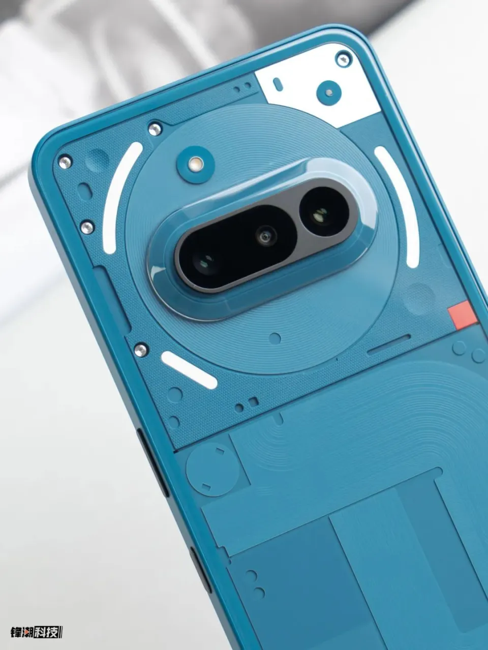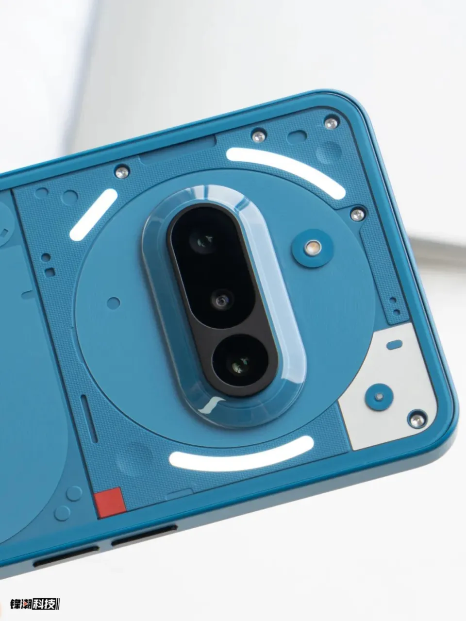 镜头外有一个大的圆形装饰,再往外则是 Nothing 善于的Glyph灯带