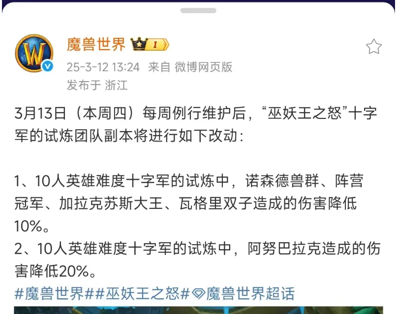 此中诺森德兽群、阵营冠军、加拉克苏斯大王、瓦格里双子造成的伤害低沉10%,而在10人豪杰难度十字军的试炼中,阿努巴拉克造成的伤害低沉20%。 |