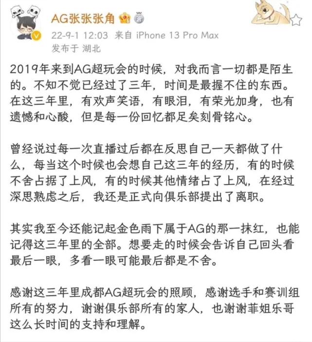 陌陌聊游戏,给您带来出色猛烈的KPL赛事资讯! 2022年KPL夏日赛就只剩下总决赛这一场还没有打了!对于其他的战队来说,已经可以开始为冠军杯做准备了!据爆料,在冠军杯的比赛开始前,会有一个短暂的转会期,加入冠军杯的战队可以在这段时间内举行生意业务和调解! 网友们最为关注的战队,无疑就是AG超玩会了!总体来说,AG超玩会在夏日赛的体现还算是合格的! AG超玩会之以是可以或许在夏日赛打到败者组的第二轮,可以说和他们新的打野选手未央是分不开的!假如没有未央,AG超玩会别说打进S组了,以致都有大概会长期在B组倘佯!说到这里,就不得不说选择了未央的张角! 要知道,初晨开始AG超玩会耗费了1000万从EDG买过来的,不消初晨而选择用新人未央,是须要很大勇气的!毕竟证明,张角的做法是对的! 但是,在夏日赛的赛程中,张角不再继承AG超玩会的赛训总监,却成为了一个主播!这是网友们万万没有想到的。岂非张角就如许不停当主播吗?要知道,月光都已经再次执教了。 就在各人都没有遗憾的时间,张角说9月1日会给各人带来一个消息!这个消息终于官宣了!张角正式向AG超玩会辞职!看到这个消息,信任让许多AG超玩会的粉丝优劣常伤心的!毕竟AG超玩会能取得冠军,和张角是分不开的! 张角离开AG超玩会之后,下一家会去到那里呢?不少网友体现,张角很大几率是去Hero久竞,和久哲强强联手了!在久哲的向导下,Hero久竞从一支B组战队,晋级到了季后赛。固然终极没有可以或许走得更远,但是久哲已经证明了他的本事! Hero久竞最大的题目是,赛训班子太年轻了,久哲不大概把全部变乱都揽下来!因此,Hero久竞须要一个“老练”的锻练向导赛训组,张角无疑是最好的选择! 假如张角真的去Hero久竞当赛训总监,那么不得不说,世冠赛的Hero久竞,将会非常强势!大概可以或许拦截eStar皇朝的战队,会多了Hero久竞!不少网友体现,张角辞职之后,AG超玩会何去何从呢? 固然说夏日赛没有张角,AG超玩会也打进了败者组第二轮。但是许多东西都是张角遗留下来的,选手也都是张角挑的,AG确实要想办法了! 末了我们再来聊聊皮肤,项羽和虞姬的CP组合皮肤“霸王别姬”已经优化完成了。优化后的皮肤可以说非常有中国文化的元素,无论是形状和技能殊效,都让玩家非常的满意! 这款皮肤不久之后也会返场,听说是末了一次返场了,喜好这款皮肤的小同伴,万万不要错过哦! |