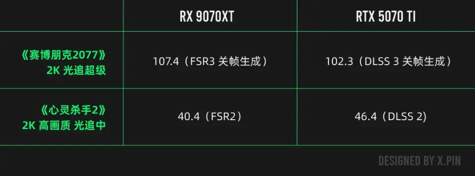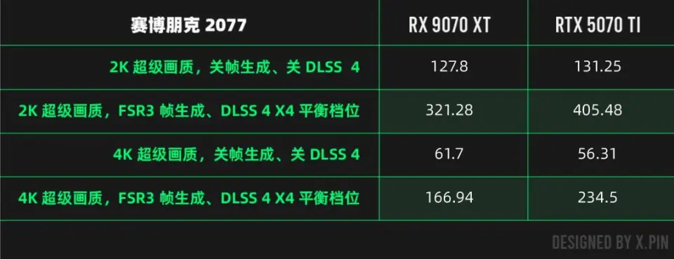 信赖近来这段时间,差友们一直都被英伟达显卡的消息刷屏。最热闹的一条,大概要数老黄在发布会上的那句 “5070 媲美 4090” ,但 5070 现实的游戏表现,各人着实并不买账。 再思量到代价,老黄的卡末了到咱们拿到手里,要加多少钱就不消我多说了吧?最终就导致 5070 给人的感觉以致还不如 4070 。。。 照旧国外的老哥比力敢说 英伟达有如许 “ 不思进取 ” 的表现,各人也就很好奇,对家的 AMD 会怎么做?但惋惜, AMD 客岁开始的官方口径就是,本年不计划在高端和旗舰显卡范畴和英伟达竞争。 以是信赖许多人都和我一样,原本对这次的新品 9070 系列,没抱太大的等待。但没想到测完之后,发现 9070XT 居然在性能方面对标上了 5070Ti。 而且 RX 9070 XT 国行引导价 4999 元, RTX 5070 Ti 要 6299 元。再对比一下京东上的现实到手价,虽然双方都不自制,但 AMD 这边代价团体确实更低一些。。。 我们拿到 9070XT 也有段时间了,接下来托尼就带大伙看看,它到底是怎么让那句 “AMD YES”,酿成现实的。 我们手里的这块显卡是蓝宝石 RX 9070XT 的 “ 氮动 ” ,光听名字,你大概不太明确它的定位,但着实就是从前蓝宝石的旗舰——超白金系列。 既然是旗舰,就肯定是有点花活儿( 感情代价 )在身上的。 呐你看,背板支持磁吸,拆装优雅不费劲;而且厂家也知道咱们装机都想雅观一点,以是供电接口直接筹划在背板下面,方便把电源线藏起来;还有个不抢戏的 ARGB 灯带,隐蔽在格栅里面。这一套加起来,感觉非公卡的颜值也挺抗打的。 要知道, 9070 这一代的公版卡并不会售卖,这大噶?鲻得最简洁低调的非公版之一了。 至于参数性能的部门,既然 AMD 说本年不做旗舰了,那我们也来看看,本年的 9070 系列对比客岁 AMD 自家的旗舰显卡 7900GRE 以及 7900XTX 在参数上差了多少—— 轻微跟各位表明一下,表格里第三位的 7900GRE 大概许多小伙伴都没见过,它有点类似于英伟达这边的 5090D 和 4090D 一样的存在,都是为了应对美国的出口限定,做的砍 AI 算力 “ 中国特供版 ” 。 可以看出来,虽然 AMD 嘴上说本身不做高端了,但着实 9070 系列的参数和设置照旧挺高端的——相比前代的 RDNA 3, 9070XT 用上了全新的 RDNA 4 架构和台积电 4nm 工艺。 根据官方的说法, RDNA 4 的光追性能相比 RDNA 3 直接翻倍。而且盘算单元的团体性能提升约 40% ,以是 9070 系列纵然在盘算单元总数更少的环境下,图形性能还与 7900 系列相称,以致 9070 XT 的 4K 分辨率游戏性,相比 RX 7900 GRE 提升 42% 。。。。 而且 AMD 还在软件上做了升级,本年 AMD 自家的 FSR 帧率加强技能也从 FSR3 升级到了 FSR4 ,在超分算法上面学着老黄的 DLSS 引入了 AI 模子进行超分。 利益是画面的鬼影大幅消失——你们留意看下面这组对比里任务的肩膀与手臂部门, FSR4 超分之后的画面表现要远好于 FSR2 与 FSR3 。 但毛病则是由于引入了 AI 运算, FSR4 不再像从前的 FSR 一样 “ 所有显卡都能用 ” 了——只有这次的 9070 系列显卡能启用 FSR4 ,也算是有得有失了。 不过相比这些纸面上的信息, 9070XT 的实测,更让托尼感觉到 AMD 终于 YES 起来了。前面提到的, 9070XT 的性能跟英伟达 RTX 5070 Ti 差不多,就是托尼把两张卡拉过来一起测,得出的结论。 左 RX 9070XT ,右 RTX 5070 Ti 先来看看,通例的显卡测试软件 3DMark ,岂论是在 Time Spy 的 2K 分辨率,照旧 Time Spy Extreme 的 4K 分辨率下, 9070XT 的得分都更高,以致 Time Spy 能领先 8% 以上。 这已经是 AMD 的传统艺能了——同样的产物定位下, AMD 这边永久能给你更强的光栅化性能。对比老黄在光栅性能这边没啥大的提升, 50 系显卡给人的感觉是在 “ 卖 DLSS 4 算法 ” , AMD 的提升但是实打实的。 而且这次 9070 XT 在 Port Royal ( 光追性能测试 )中,提升幅度非常大,最闭幕果只比 NVIDIA 的 5070Ti 低了 2.2%。 要知道,以往这项测试,往往是 N 卡占绝对优势。 说起来也不难懂确,毕竟英伟达在光线追踪这块,从 RTX 20 系显卡以来,专用的光追硬件 RT Core ( 光线追踪核心 )迭代了三代。而 AMD 在 RDNA 3 架构,才摆脱对通用盘算单元的依赖,实现光追的硬件化。 但一看结果, AMD 确实有点要翻身的意思—— 9070 XT 跑分都快追上 5070 Ti 了,让人好奇它在游戏中能有怎样的表现。 我们先试了试没有光线追踪画面选项的游戏——博德之门 3,岂论是在 2K 和 4K 分辨率下, 9070 XT 的表现都会比 5070 Ti 更好一些,也印证了上面的跑分数据。 在赛博朋克 2077 中,也是一样的环境:关闭帧生成和 DLSS 4 的环境下,纯光栅化的对比, 9070 XT 的帧数仍旧能跟 5070 Ti 有来有回。 但是由于英伟达有 DLSS 4 这么个 “ 拼好帧 ” 黑科技,打开 DLSS 4 之后帧数蓦地从原本 2K 分辨率下的 131 帧暴涨到了 405 帧;4K 分辨率下也能从 56 帧提升到 234 帧。 然而 AMD 这边的 FSR3 还不能实现 “ 一连多帧生成 ” ,开启 FSR3 帧生成之后的结果,会比英伟达的 5070Ti 低上 80 帧左右,造成了 25% 左右的性能差距。 哎,到这里,你是不是猜疑托尼前面说的, “9070XT 跟 5070Ti 差不多 ” 是骗人的? 先别急。。。由于托尼试了下支持光线追踪的游戏,发现 A 卡终于不是一边倒地不如 N 卡了,以致能在赛博朋克 2077 中,帧数领先 5%。 固然这里也要表明一下,上面这组帧率,是为了验证显卡对光线追踪的支持,关掉了 N 、 A 两家的 “ 帧生成 ” 功能之后跑出来的。但是 N 卡毕竟有 DLSS 4 的 “ 拼好帧 ” ,打开之后帧率表现又是别的一回事了。。。 但说到这里,