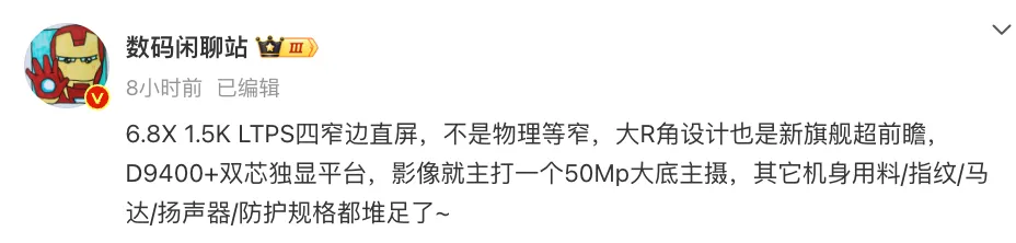 目前,联发科技官方已经正式宣布,将在4 月 11 日于深圳带来MediaTek 天玑开辟者大会 2025(MDDC 2025)。 这次活动中,将发布 MediaTek 新一代旗舰 5G 智能体芯片、天玑生态新品以及一系列开辟者办理方案。 联合以往的消息来看,这次活动中将表态的芯片产物有望是已被曝光多次的天玑9400+。 据悉,天玑 9400 + 将是天玑 9400 的小幅升级版,仍旧延续全大核架构设计,并在CPU主频上举行提升。 参数细节方面,这颗天玑 9400 + 芯片将相沿1颗Cortex-X925超大核、3颗X4大核以及4颗A720大核的组合。 此前的消息表现,一加、真我、REDMI、vivo、iQOO等多款新品都将在接下来推出相应机型。 本日,博主@数码闲聊站 的一份最新爆料中就提到了大概会到来的天玑9400+新机信息。 这份爆料中提到:“6.8X 1.5K LTPS四窄边直屏,不是物理等窄,大R角设计也是新旗舰超前瞻,D9400+双芯独显平台,影像就主打一个50Mp大底主摄,别的机身用料/指纹/马达/扬声器/防护规格都堆足了~” 联合相应推测来看,这款新机有大概是REDMI旗下的 K80 至尊版手机。也就是说,REDMI K80至尊版将配备一块6.8英寸左右的直屏,联合大R角设计。 以往的消息还表现,REDMI K80至尊版将接纳金属中框和单点超声波指纹辨认,内置7000mAh以上的电池,但好像没有潜望镜头。 别的,一款小米旗下型号为25053RT47C的新机于克日通过了 3C 认证。 认证信息表现,这款装备将配备型号为MDY-14-EC的电源适配器,支持最高90W充电。此中没有表现具体的系列信息,但相应推测以为其应该是全新的REDMI Turbo 4 Pro。 与此同时,博主@数码闲聊站 克日的一份爆料中提到,“之前说过了,4月另一个SM8735新机也是6.83,1.5K LTPS超高频调光护眼直屏,同样是窄边框大R角设计,同档同平台新机中最大电池+最强质感~” 相应的推测表现,这款新机应该就是全新的REDMI Turbo 4 Pro。 联合现有信息来看,全新的REDMI Turbo 4 Pro 将配备一块6.8英寸左右的屏幕,1.5K分辨率,旗舰同款发光材料,极窄四边框直屏设计。联合玻璃后盖机身和金属中框,还将率先在中端线遍及高质感CMF,团体的视觉结果和机身质感应该会比力不错。 核心规格部分,全新的REDMI Turbo 4 Pro将会搭载高通骁龙 8s 至尊版芯片,内置7500mAh的电池。 据悉,其搭载的这颗芯片接纳骁龙8至尊版的同工艺、同架构,性能大概在第二代骁龙8和第三代骁龙8之间。但综合体验应该会比第三代骁龙8高一些。 参考来看,不久前发布的REDMI Turbo 4正面搭载一块6.67英寸1.5K柔性OLED直屏,首发天玑8400-Ultra处理处罚器,共同REDMI 3D冰封散热体系、小米汹涌OS 2,内置6550mAh最巨细米金沙江电池,支持IP66+IP68+IP69级别防水,1999元起售。 对比可见,全新的REDMI Turbo 4 Pro将会在性能和续航本领方面举行提升。 至于产物订价方面,REDMI品牌总司理王腾曾表示“未来2-3K会由Turbo系列来承接”。就此来看,全新的REDMI Turbo 4 Pro起售价应该在2000元档位。 |