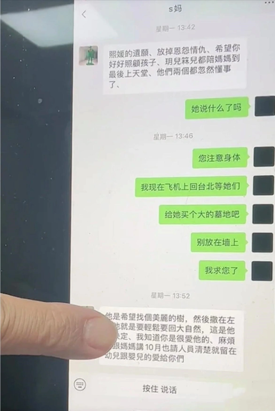 本以为大S徐熙媛下葬后,关于他们家的讨论就会渐渐淘汰,没想到的是随着葛斯齐公开S妈黄春梅和汪小菲的谈天记载后,再次引发了网友的热议。 而就在近日,葛斯齐在直播中再次公开关于大S徐熙媛妈妈黄春梅的更多谈天记载,信息内容也很复杂。 大S妈妈谈天记载再次公开,信息内容复杂 这段谈天记载是在2月2日大S徐熙媛还在接济的时间,当时汪小菲扣问前妻大S徐熙媛的环境怎么样了,是不是很严重? 一开始S妈黄春梅体现不要讲出去,由于不太好,孩子也没法担当,同时S妈黄春梅盼望汪小菲前往台湾,让他给小玥儿当背景。 之后S妈黄春梅就向汪小菲透露大S徐熙媛已经走了,不外由于要处理惩罚一下保险的干系事情,以是临时还不能回去。 从谈天记载看,汪小菲整个人是懵了的,连用两个疑问句来体现自己的难以置信,只是终极还是担当了大S徐熙媛离世的事实。 之后汪小菲则关心两个孩子的感情,S妈黄春梅体现两个孩子都很乖,就是小玥儿仍然无法担当大S徐熙媛的离世。 这也难怪,小月儿当时已经10岁了,是懂事情的年事了,性格方面又比力敏感,这个时间也只有身为父亲的汪小菲才气够给她安全感了。 而S妈黄春梅也强调这件事临时不要让媒体知道,估计是大S徐熙媛忽然离世让他们处于伤心中,临时不想被媒体打搅。 接洽之前大S徐熙媛遗愿曝光,盼望汪小菲可以或许照顾好两个孩子,尚有是放下恩怨情仇,当时汪小菲唯一能做的是想给前妻买一块好一点的坟场。 之后S妈黄春梅再次复兴汪小菲,她称大S徐熙媛盼望可以或许回归大自然,也就是所谓的树葬,尚有S妈黄春梅的一句话让人感慨莫名,那就是“我知道你是很爱她的”。 事实证明,汪小菲确实是一个性情中人,在之后乃至一度在雨中下跪。 大S死因再引热议,汪小菲大概真的爱前妻 不外一些网友也以为S妈黄春梅是在忽悠汪小菲,知道大S徐熙媛离世的消息泄露,然后让汪小菲前往吸引媒体的关注。 厥后也确实是如此,汪小菲飞回台湾后全部媒体的眼光都会合在他的身上,反倒是关于S家的热议变少了,他们家不绝都躲着。 这一次葛斯齐曝光了S妈黄春梅和汪小菲的谈天记载后再次让网友们对于大S徐熙媛的死因有了质疑,此前就传大S徐熙媛的手臂有针孔。 之后大S徐熙媛被迅速火化,这让各人着实无法明白。更别说谈天记载中尚有S妈黄春梅让汪小菲不要让消息泄露给媒体。 不外当时S妈黄春梅也处于刚失去女儿的环境,思绪混乱也可以体贴,只能说这一次S家对于大S徐熙媛的死后事确实处理惩罚得欠好。 唯一让人欣慰的是汪小菲这一次真的放下了恩怨,在大S徐熙媛遗产分配和其他干系的东西方面两家并未发生太多抵牾。 逝者已矣,末了盼望汪小菲可以或许照顾好两个失去妈妈的孩子,让他们康健地发展。不知道小搭档们对于葛斯齐再次曝光的S妈与汪小菲谈天记载怎么看呢? |