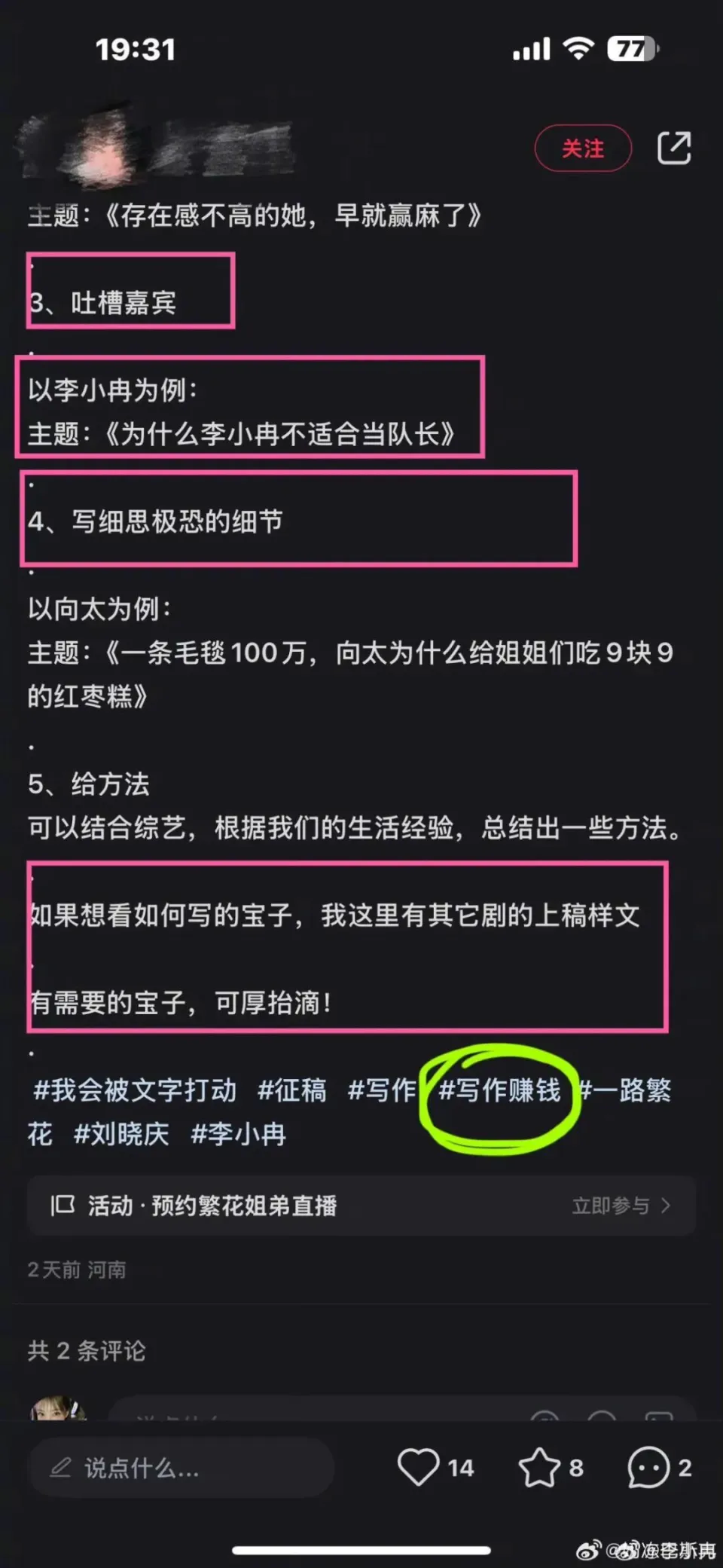 克日,演员李小冉因综艺节目《一起繁花》的争议一度陷入舆论漩涡。 3月22日,李小冉发文怒怼黑粉、营销号,她表现:“先是营销全员恶人论,末了挂我家人,之前就沟通过,黑我一个我ok的,但家人是我底线,在这个娱乐至上的期间,盼望你们保存点职责操守,踩我炒作上热搜无所谓,因为广场也没活人,我家人没招你们哈,有偿征文写作赢利写作变现的也赚差不多了,赶紧囤点金子去吧。” 李小冉发文截图 同时李小冉还晒出多张图片,图中表现有偿征稿《一起繁花》的品评性文章,并要求拉踩李小冉。 ↓↓↓可滑动查看 综艺节目《一起繁花》播出以来,李小冉和刘晓庆是话题人物,曾多次上热搜。今天李小冉就登上了两个热搜。 综艺节目截图 李小冉在节目中表现,自己从前在北京舞蹈学院附中学习时对舞蹈缺乏爱好,14岁时曾试图退学未果。1996年从东方歌舞团辞职转行演艺圈时,父亲盼望她重返舞团稳定发展,乃至提出代她向团长讨情,但她果断拒绝。两代人关于职业规划的辩论升级,最终演变为断绝接洽的暗斗状态。 李小冉表现,父女暗斗期间,她处于经济窘迫状态,但对峙演艺门路。当时,李小冉的心田很渴望被父亲明白,但两边都因性格倔强不愿低头。 经过一年半的对峙后,李小冉主动突破沉默沉静,父女关系徐徐修复,父亲也明白了她的职业选择。不外,虽然目前父女关系已规复正常,但他们一样寻常聊天仍保持“不凌驾40分钟”的原则,以克制打骂。 “李小冉给刘晓庆打了最低分”热搜源于李小冉在评分环节给刘晓庆打了“心目中的低分”9分,称其常常问自己一些无法答复的标题,让她以为很焦急。对此,刘晓庆高情商回应称“这说明我还有进步空间”,并坦然继承了效果。这也成为该档节目在收官阶段的话题度之一。 李小冉。图源个人微博 公开资料表现,李小冉,1976年5月8日出生于北京市向阳区,结业于北京舞蹈学院 ,中国影视女演员。1996年,参演个人首部电视剧《保镖之翡翠娃娃》,从而进入演艺圈。2000年,出演年代剧《像雾像雨又像风》,依附安琪一角得到关注。 |