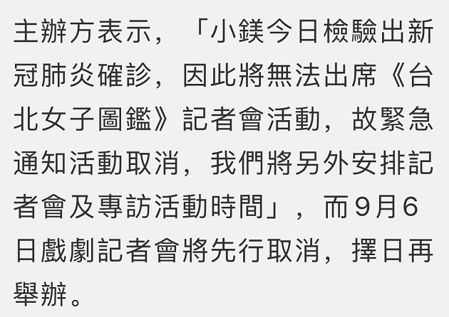 9月1日,据台媒报道,着名演员桂纶镁被确诊新冠。 据悉,桂纶镁的新片《台北女子图鉴》原定9月21日上线,桂纶镁也将在9月6日出席新片发布会,但由于确诊新冠,故主理方告急关照:因演员桂纶镁查验出新冠肺炎确诊,依照法规将无法出席活动,故在此关照活动取消。 对此,有媒体记者意图接洽其经纪人扣问桂纶镁的当下病情,结果却没得到对方的回应,大概也是被这突如其来的不测状态弄得措手不及。 据大数据统计,如今台湾省地区的现有确诊病例已经凌驾500万,此前也有不少台湾省艺人被确诊,此中包罗王力宏 、谢依霖 、蔡健雅、陈柏霖、胡宇崴 、王少伟 、杨铭威以及Ella节目组的48位工作职员等,大多都是各人耳熟能详的着名流物。 可以预见的是,桂纶镁由于被确诊新冠势必会对其新作推广宣传带来肯定水平的影响,究竟这部作品被业内广为看好,不少粉丝也满心渴望她能借助这部作品再度爆红,而主理方也体现,新片记者会后续再择日举行。 据相识,在《台北女子图鉴》中,桂纶镁扮演的脚色“林怡姗”是一位自带故事感的职业女性,该剧也会围绕职业女性的发展奋斗履历为主题,陈诉她们有关亲情、友谊、爱情的人生进程与故事,之前剧方已经放出了前导预报片,在仅有的剧情片断中,桂纶镁的体现就已经富足抢眼。 不外前几日,这部剧中的部分情节设定也曾引发观众的质疑,缘故原由是剧中桂纶镁扮演的女主在剧中发帖准备在台北租房,报价仅为4千台币(902元),此中房屋还要包罗根本家具和网络水电,这个情节被许多网友痛批脱离实际,究竟实际生存台北地区的房屋租金要是剧中的两倍,为此这部剧也被部分网友提前唱衰,以为其剧情悬浮,编剧显着不懂行情。 不外鉴于影后桂纶镁担当主演,照旧有更多观众对这部剧怀揣等候,信赖影后的演技不会让各人扫兴。末了衷心渴望桂纶镁能好好休养,早日病愈,也等候其新剧能早日上线。 |