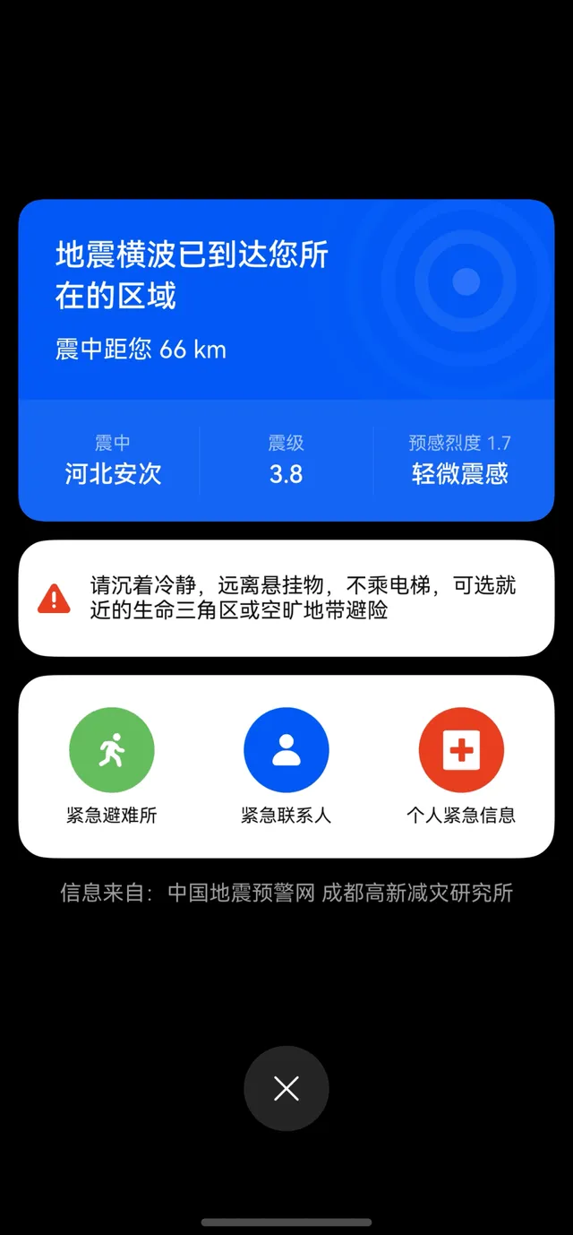 3月26日破晓1点21分,河北省廊坊市永清县发生4.2级地震,北京地区震感显着。很多市民在熟睡中被突如其来的震惊惊醒,交际媒体上灵敏掀起热议,不少网友分享了本身的震感履历。本次河北地震中,一些华为手机用户收到预警信息,在震感到来之前便已警觉,灵敏接纳行动,阔别伤害地区。 地震预警是一项相对小众但极具实用代价的功能,能在地震波到达前几秒到几十秒提供提示,为用户争取名贵的反应时间。 那么怎样开启华为手机地震预警功能?为确保用户能实时收到预警信息,发起按照以下步调开启: HarmonyOS 5及以上版本:进入设置 > 体系> 应急预警关照,开启地震预警服务开关,并进入设置 > 隐私与安全> 位置,打开“访问我的位置”开关,确保装备保持联网状态;HarmonyOS4.3及以下版本则必要进入设置-安全-应急预警关照,开启地震预警开关,并进入设置-隐私,打开“定位服务”开关、保持手机/平板处于联网状态。 地震的发生通常难以推测,但我们可以通过科技本事和一样平常防范来低落风险。除了开启手机地震预警功能外,发起各人随时备好应急包,包罗饮用水、食品、手电筒、应急药品等必须品,并订定家庭告急疏散筹划。 科技的发展正在让我们的生存变得更加安全可控,华为手机地震预警功能便是此中的范例代表。在突发变乱中,提前获取预警信息至关告急,而华为手机通过科技气力为用户提供了可靠的安全防护保障。 |
