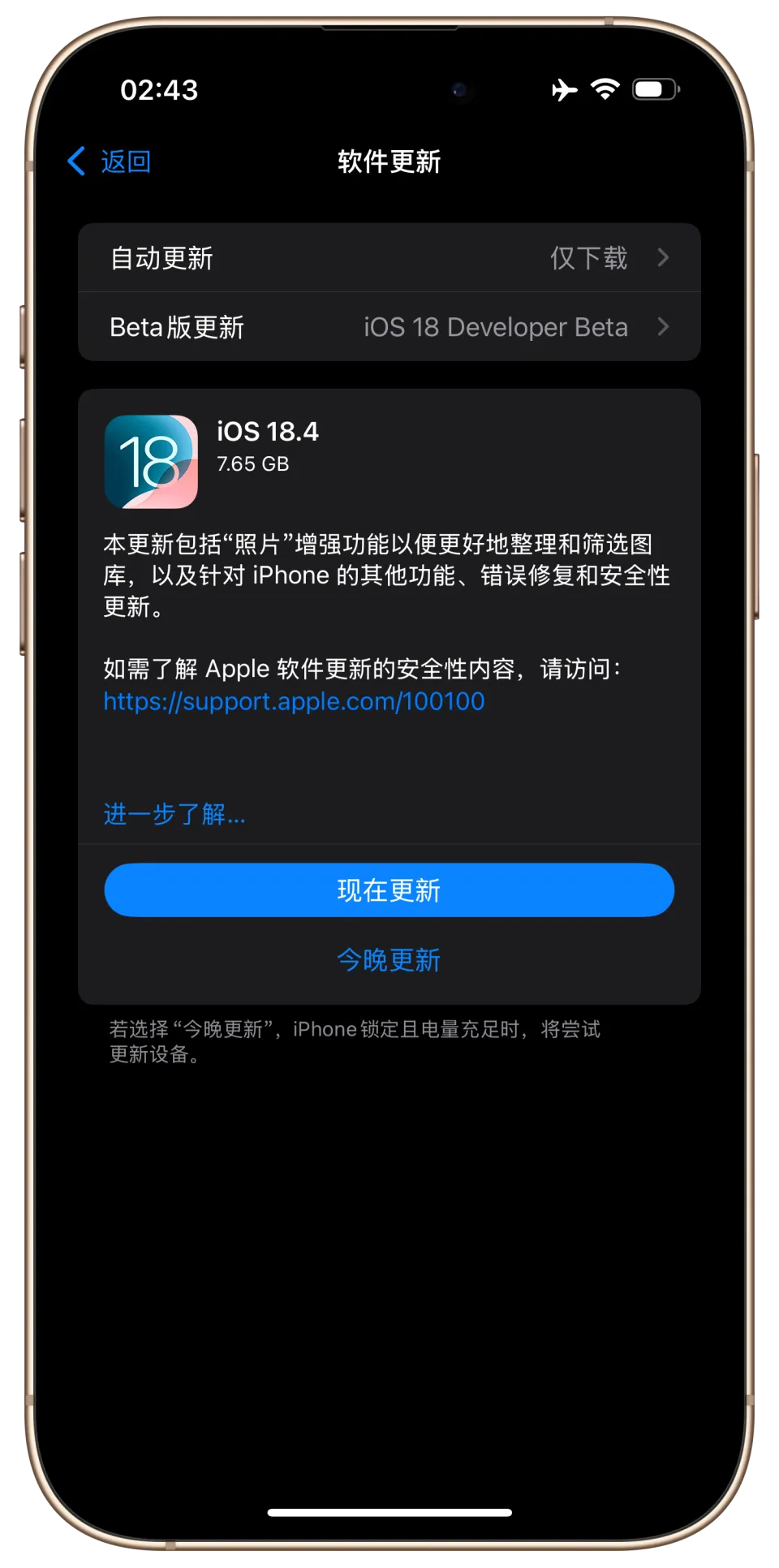 体验感受小编本身的使用体验来看,iOS 18.4 RC 2(和正式版类似)流畅度体现非常令人满足。实在此前测试版中存在的卡顿题目令人崩溃,但正式版中已经完全修复。续航方面也体现正常,一天一充没有非常耗电或发热环境。 不外,苹果依然没有修复 App 切换器的颜色饱和度题目,视觉上略显突兀,但不影响实际使用。 升级建议总体来看,iOS 18.4 是一次值得升级的更新,尤其是对于现在正在使用 iOS 18 体系的用户来说。只管这次更新并未到场太多令人等候的新功能,改动幅度也相对较小,但大量漏洞的修复却是不可忽视的亮点。因此,假如你还在使用 iOS 18.x 的早期版本,为了更好的安全性和稳固性,可以思量为你的 iPhone 升级到最新版本。 至于仍停留在 iOS 17 或更低版本的用户,假如你对 iOS 18 的新功能没有太高需求,也可以选择继续留在低版本。不外,这须要在可以大概担当与漏洞并存的条件下做出决定。 已经升级到 iOS 18.4 的小伙伴,接待在评论区分享你的使用感受,大概依然存在的题目等。 |
