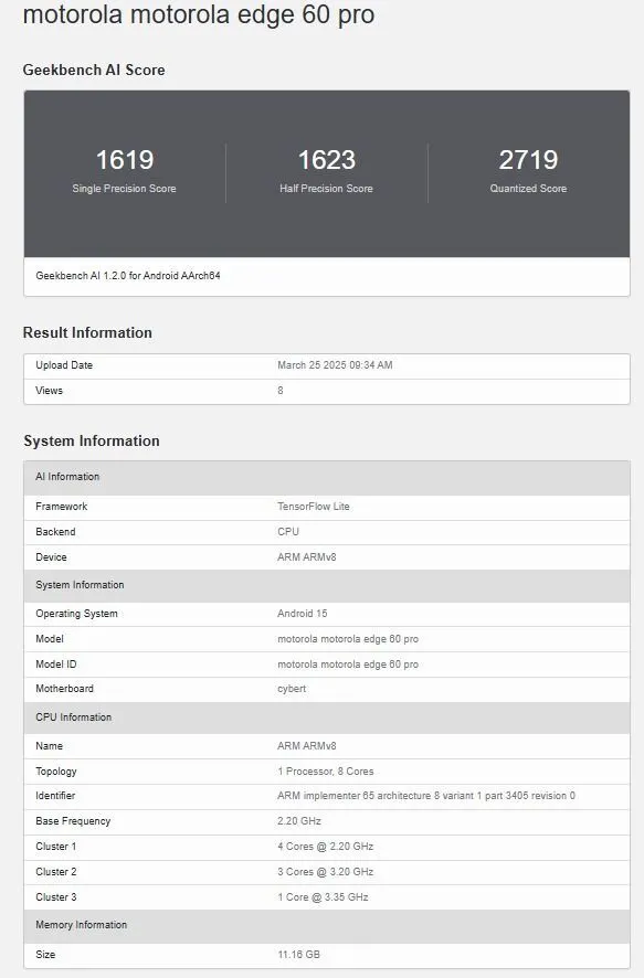 IT之家 4 月 2 日消息,科技媒体 xpertpick 昨日(4 月 1 日)发布博文,分享了摩托罗拉 Edge 60 Pro 手机的真机照片,展示了该机正面曲面屏和反面素皮材质的设计。 表面方面,该机一连前代 Edge 50 Pro 的曲面屏设计,提供沉浸式观感。背部采取素皮材质,与此前发布的 Edge 50 Fusion / Neo 等机型一脉相承。 后置三摄模组呈方形分列,含 LED 闪光灯,预计包罗主摄、超广角及长焦 / 微距镜头,机身中心的摩托罗拉标志保持极简风格,整体彰显旗舰定位。 IT之家此前报道,Edge 60 Pro现身 Geekbench AI跑分库,该机将首发搭载 MediaTek Dimensity 8350 芯片,预装 Android 15 体系,基础版本配备 12GB 内存。 FCC 认证文件体现其支持 5G、蓝牙 LE 和 Wi-Fi,TUV Rheinland 认证则证明内置 5100mAh 电池,搭配 68W 快充技能。该机已通过印度 BIS 认证,预计近期发布。 |