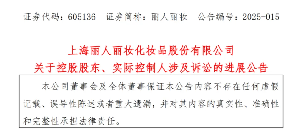 4月1日,上海丽人丽妆化妆品股份有限公司(SH605136,以下简称“丽人丽妆”)发布公告,披露了控股股东、实际控制人黄韬与其前妻翁淑华之间的股权分割渴望。 根据公告,法院终审讯断:黄韬持有的丽人丽妆的股中的1675万股归翁淑华全部,黄韬应于讯断见效之日起15日内配合翁淑华将上述股份变动登记至翁淑华名下。 4月2日,丽人丽妆收跌0.56%,每股报7.15元,现在总市值29亿元。据此盘算,上述1675万股市值约1.2亿元。 黄韬仍旧是实控人 根据公告,本次诉讼事项涉及的股份占丽人丽妆化妆总股本的比例为4.18%。 此次权益变动后,黄韬持有丽人丽妆1.13亿股,持股占比例则从原有的32.46%降至28.28%,但仍为丽人丽妆的最大股东及实际控制人。翁淑华则通过此次分割,直接持有公司1675万股的股份,成为紧张股东之一。 丽人丽妆表现,本次诉讼系控股股东、实际控制人涉及仳离后财产纠纷而举行的财产分割事项,预计对于公司本期利润或期后利润不会产生庞大影响。 公开资料表现,黄韬现在继承丽人丽妆的董事长,总司理。1973年生,中国国籍,无境外永世居留权,1998年毕业于清华大学自动化专业,获得硕士学位。1998年7月至2000年8月,任教于清华大学;2007年2月建立北京丽人丽妆,继承董事长;2010年5月建立丽人有限,2010年5月至2016年3月继承丽人有限董事长,总司理。2016年3月至今继承公司董事长,总司理。 夫妻白手发迹 资料表现,丽人丽妆成立于2010年5月,是一家以从事化妆品网络零售服务的企业。2016年,丽人丽妆以2200万元拍下Papi酱的首支贴片广告,“新媒体史上第一拍”惊动一时。 2020年9月29日,公司登岸上交所主板。 然而,这家范例的创业“夫妻店”上市不到一年后,夫妻就已“反目”。 2021年3月8日,翁淑华通过个人微博喊话丈夫黄韬,“记得你是一个有妻儿的夫君,记得你作为一个丈夫和父亲应尽的责任”。她表现,这几年黄韬晚上从不回家,连人影都见不到,孩子抱病时,连续拨打其电话也没有覆信...... 当年3月11日,翁淑华再度在微博发声:“既然你丽人丽妆黄韬眼里只有丽人丽妆和副总,没有这个家,那请留意查收文件,换个地方见吧!” 据红星消息此前报道,翁淑华说,现在的丽人丽妆,是本身一边在家照顾抱病的黄韬,一边从一家淘宝店谋划起来的。 翁淑华称,本身在年事比较轻的时间就熟悉了黄韬,并一起在北京开始创业。“我们创业是在2007年开始,我老师和我,另有另外一个同伴,我们3个人从家庭作坊开始做起。” 翁淑华回想,2012年他们有了第三个孩子后,黄韬想让她在古迹和家庭中选一个,“他渴望我回归家庭。其时他对我说,我在家内里把孩子教诲好,这是主要的,他把古迹做好。”“2019年根本上是没怎么跟公司接洽了,之前陆连续续还是会有一些必要我做的事变,我还是会去做。” 翁淑华表现,2019年之后黄韬就不再回家,一开始她去公司找过黄韬,陆连续续见过反复,“但他也是敷衍了事,厥后渐渐地,根本上公司我都进不去了,他们(公司员工)就拦阻了。” 红星消息近四年业绩“过山车” 主营产物营收大幅下滑 值得留意的时间,3月27日晚间,丽人丽妆发布年度陈诉,公司2024年实现业务收入17.28亿元,同比淘汰37.44%;归母净利润亏损2440万元,同比淘汰182.64%;扣非净利润亏损3998万元,同比淘汰437.32%。公司拟不分配现金股利,不以资源公积转增股本。 回顾往年业绩,丽人丽妆营收呈下滑趋势,净利润在2022年大幅转亏,在2023年略微回暖后2024年再转亏。2021年至2024年,公司营收分别为41.55亿元、32.42亿元、27.62亿元、17.28亿元,归母净利润分别为4.11亿元、-1.39亿元、0.30亿元、-0.24亿元。 详细产物来看,公司第一大营收泉源美妆洗护品类产物毛利率虽然同比有所增长,但业务收入下滑近四成。其他品类营收虽然大幅增长,但占比较小。 丽人丽妆分析,2024年,国内整体经济仍面对诸多不确定性,美妆行业也受到波及,需求不敷,部门代价段出现消耗下滑征象。以天猫为代表的传统电商流量未显着复苏,给公司谋划带来挑衅;以抖音为代表的新兴渠道业务整体增速放缓。 此外,日韩系化妆品尚未显着复苏,公司与部门韩系品牌制止互助,与部门欧美品牌厘革运营模式,这些因素都对公司陈诉期内的业绩产生了肯定影响。 对于2025年,丽人丽妆预测,整体美妆市场及互联网电商市场将会出现迟钝复苏的迹象,以天猫为代表的传统电商平台流量大概会渐渐走出低谷。新兴渠道业务将会稳中有升。自有品牌发展上,公司依旧主推“玉容初”“美壹堂”品牌。 (声明:文章内容和数据仅供参考,不构成投资建议。投资者据此操纵,风险自担。) 编辑|||何小桃 杜恒峰 校对|孙志成 逐日经济消息综合每经APP、红星消息、深圳商报等 保举阅读↓ 刚刚,宁德期间回应小米SU7变乱! 小米团体跌0.86%,一度跌超4%!A股这一板块团体发作! “股价跌了近一半”,马斯克顶不住了?公布下月就从白宫辞职!特朗普:他想走,但我会挽留!特斯拉销量和股价遭“双杀” 逐日经济消息 |