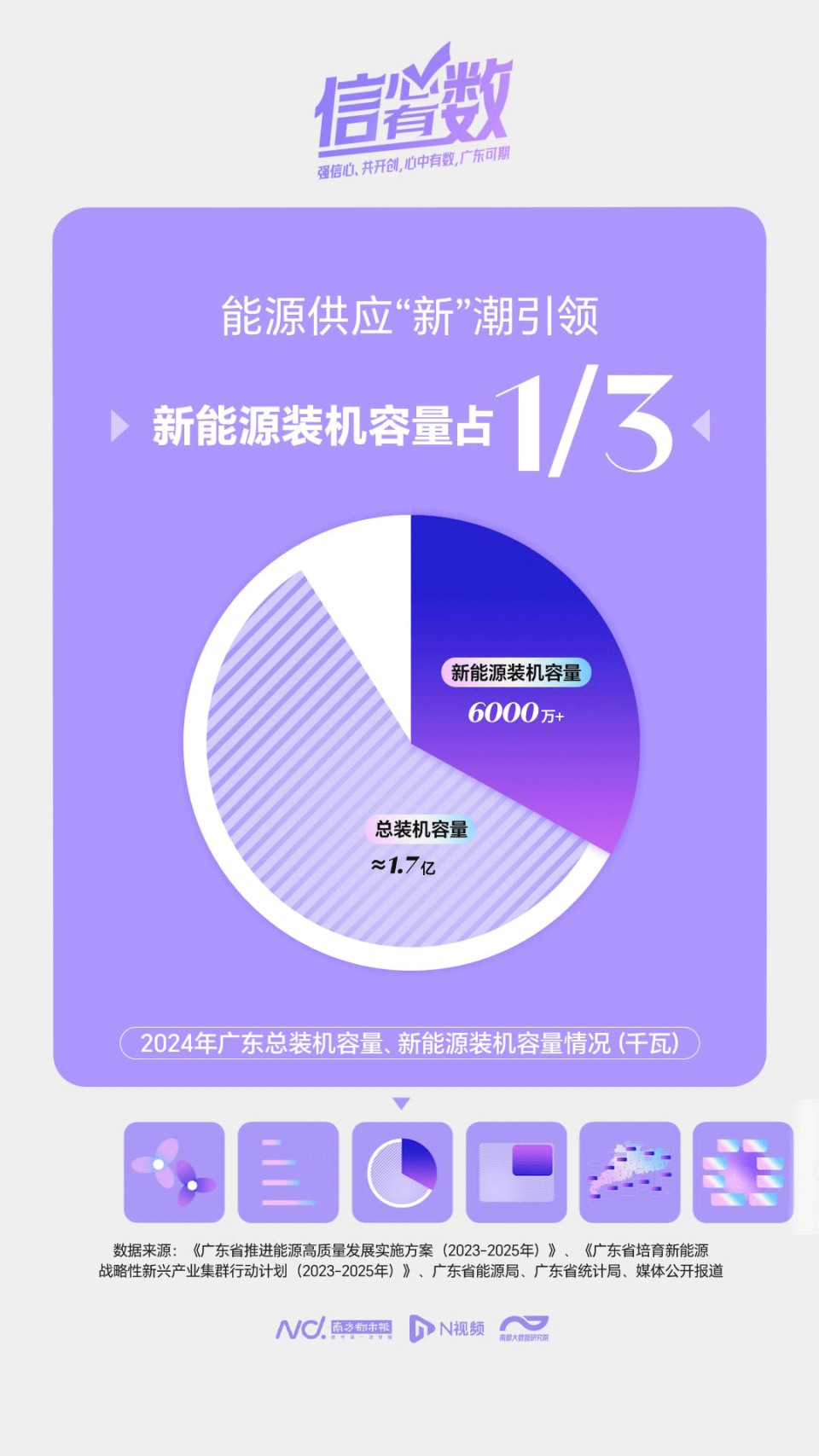新能源已从绿色低碳转型的“新权势”,渐渐发展为新质生产力的“生力军”,引领“新”潮水。制止本年3月10日,广东新能源装机容量突破6500万千瓦大关,达6712万千瓦,同比增长36%,装机增长量居天下火线,新能源装机容量占比初次到达30%。此中风电、太阳能发电装机容量达6224万千瓦,突破6000万千瓦大关,同比增长40%。这为广东区域能源结构转型注入强劲动力。 比年来,广东新能源财产科技创新程度也不绝取得“新”突破,创下多项环球、天下第一。环球单体容量最大的漂浮式风电平台“明阳天成号”正式投运,天下首台兆瓦级漂浮式波浪能发电装置“南鲲”号投入利用,环球首台抗台风漂浮式海上风电机组并网发电,天下首座500千伏超高压互换海上升压站乐成安装,“华龙一号”三代核电技能到达国际先进程度……别的,核电装机容量1614万千瓦,海上风电装机规模突破1200万千瓦,均跃居天下第一;新型储能装机规模达352万千瓦,增长超过116%。