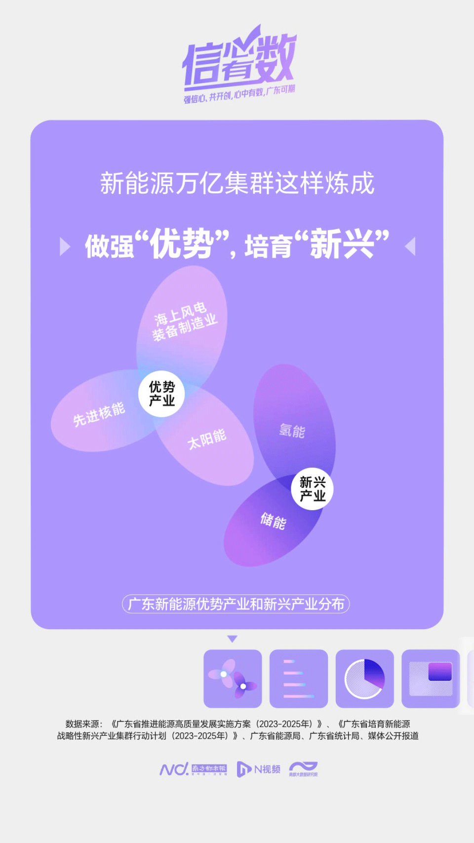 在当今环球天气变化和资源日益告急的背景下,新能源更换传统化石能源成肯定趋势。新能源财产涵盖了风能、太阳能、新型储能、氢能、智能电网、核能、天然气及其水合物、生物质能、地热能、海洋能等众多领域。 新能源财产的发达发展,更是成为衡量一个国家或地区能源转型成效以及科技创新程度的关键指标。在我国,随着2020年提着力图2030年前实现碳达峰、2060年前实现碳中和的目标,新能源财产更是进入了加速发展的阶段。 广东作为经济大省,对能源的巨大需求与日俱增。随着粤港澳大湾区和“一核一带一区”发展战略的深入推进,新能源财产在这里迎来了亘古未有的发展机会。 广东新能源财产的崛起,离不开其前瞻性的顶层筹划。早在2020年,《广东省人民当局关于培养发展战略性支柱财产集群和战略性新兴财产集群的意见》就提出,要将新能源财产集群打造成十大战略性新兴财产集群。同年9月,印发《广东省培养新能源战略性新兴财产集群举措筹划(2021-2025年)》,提出五方面的重点使命,并摆设了8项重点工程。2023年,广东省能源局印发《广东省推进能源高质量发展实验方案》,明白提出到2025年新能源财产业务收入要突破1万亿元。2024年12月,《广东省人民当局办公厅关于推动能源科技创新促进能源财产发展的实验意见》出台,夸大以科技创新引领能源转型。