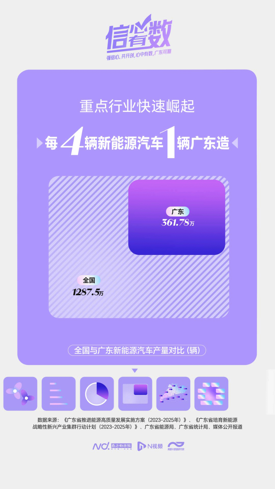 新能源领域中的重点行业也在强势崛起,尤其是新能源汽车。新能源汽车是环球汽车财产转型升级、绿色发展的重要方向,为经济增长注入新动能。 广东作为新能源汽车大省,产量独占鳌头,“广东造”反复出圈。2024年,广东新能源汽车产量超过361万辆,同比增长43%,约占天下的1/4,连续多年位居天下第一。也就是说,天下每4辆新能源汽车便有一辆来自广东。 别的,广东还拥有广汽埃安、比亚迪、小鹏等知名整车企业,它们不但生产出高品格的新能源汽车,还引领着广东以致天下的新能源汽车财产发展。多家车企公布的最新销量数据表现,以比亚迪、小鹏汽车、广汽埃安为代表的广东新能源车企一季度共贩卖(交付)超116万辆新车,比亚迪和小鹏汽车分别拿下一季度的新能源销冠和新权势销冠。 在新能源汽车配套底子办法创建方面,广东也走在火线。数据表现,广东累计建成公共充电桩超56万个,私人充电桩超95万个,超充站超2000座,公共充电办法保有量、充电电量位居天下第一。