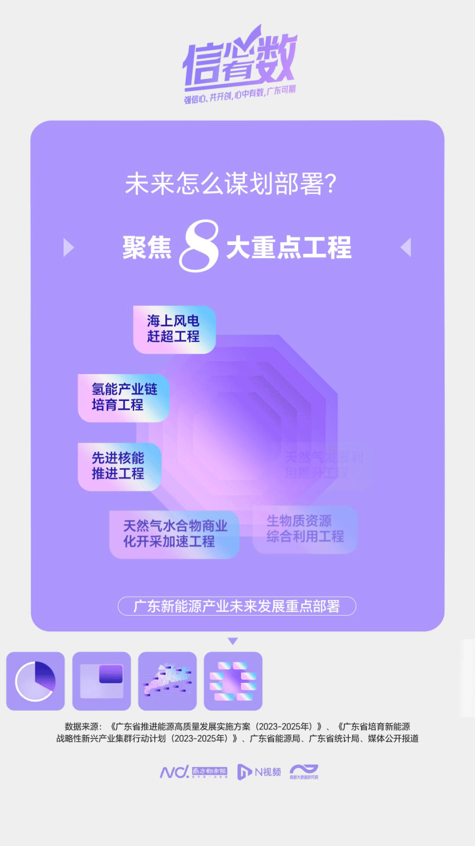 虽说广东新能源财产结果亮眼,但在厘革海潮中仍需应对多重制约因素。好比,国际商业摩擦连续升级、部门关键原材料依靠进口程度较高、财产竞争日益白热化等,这些因素都对财产发展的可连续性提出了严厉考验。 目前,广东正通过有序策划开启破题之路。《广东省创建当代化财产体系2025年举措筹划》则提出,将引导和支持汕头、汕尾、中山、阳江、揭阳海上风电财产基地规模化错位发展,把握光伏行业技能厘革机会,培养和引进链主型龙头企业。发展核电财产链,打造多少核电装备及原材料供应基地。别的,支持佛山开展氢能综合树模。 从新兴财产到万亿集群,广东也还重点摆设了未来新能源财产的8大重点发展方向,分别是:海上风电赶超工程、太阳能财产强大工程、氢能财产链培养工程、智能电网高质量发展工程、先进核能推进工程、天然气发展利用提升工程、天然气水合物商业化开采加速工程、生物质资源综合利用工程。“风光无穷”“风生水起”的新能源财产,正成为广东最具发展远景的战略性新兴财产之一。 出品:南都大数据研究院 南边智媒科技 策划:王卫国 邹莹 统筹:凌慧珊 数据收罗分析:谢小清 筹划、动效:林泳希 邓捷敏 数据泉源:广东省能源局、广东省统计局、《广东省推进能源高质量发展实验方案(2023-2025年)》、《广东省培养新能源战略性新兴财产集群举措筹划(2023-2025年)》及媒体公开报道 |