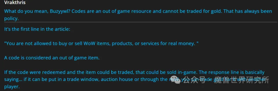 暴雪的客户支持代表Vrakthris在官方论坛上对此举行了表明。他表明说,利用游戏内支持的交易方式(比方脚色间的直接交易窗口)仍旧是被答应的。