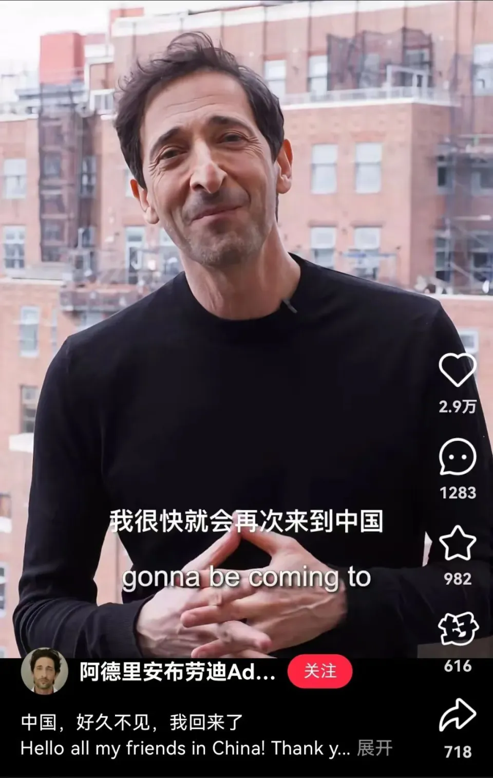 4月13日,奥斯卡影帝阿德里安·布劳迪游杭州的词条,冲上热搜。 当天,不少网友在杭州陌头偶遇了阿德里安·布劳迪。 像是,在运河边,影帝给杭州品茗大爷当起了配景。 有网友发现,影帝衣服的背后是龙的图案,直呼“他是懂入乡随俗的”。 此前,阿德里安·布劳迪开通了中国外交平台账号,并发视频称,本身计划到中国旅行。 公开资料表现阿德里安·布劳迪(Adrien Brody),1973年4月14日出生在美国纽约,犹太裔美国男演员。 2003年,他依附影戏《钢琴家》得到第75届奥斯卡金像奖最佳男主角奖。2025年,他依附《粗野派》再次斩获奥斯卡最佳男主角奖。别的,2012年,他出演了冯小刚执导的汗青战役影戏《一九四二》,在内里饰演一位美国记者。 网友批评 泉源:潮新闻·钱江晚报 报料、维权通道:应用市场下载“晨视频”客户端,搜刮“报料”一键直达;或微信添加报料客服:xxcbcsp;或拨打热线0731-85571188。如需内容相助,请拨打政企服务专席19176699651。 |