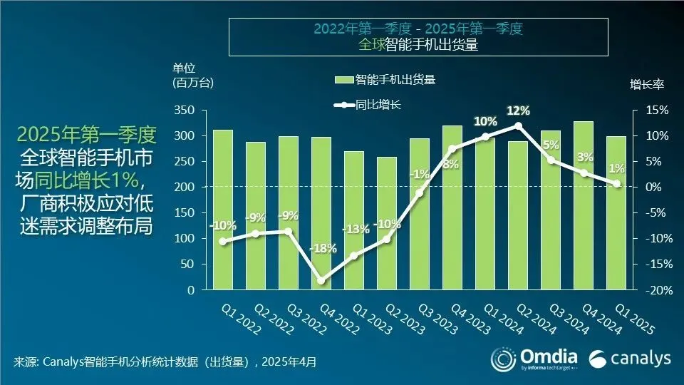 (文/汤普济 编辑/吕栋) 4月15日,Canalys发布2025年第一季度全球智能手机出货量陈诉,数据表现,2025年第一季度,全球智能手机市场团体环境比预期更为动荡,同比增长1%。市场调研公司IDC与Counterpoint的同期数据分别为1.5%和3%,均为个位数增长。 根据Counterpoint公布的排名,一季度苹果手机登上全球市场榜首(份额19%)。固然在美国、欧洲和中国市场销量持平或下滑,但苹果在日本、印度、中东非洲及东南亚地域实现两位数增长;三星、小米、vivo、OPPO均跻身前五。同时,光彩、华为和遐想摩托罗拉等厂商增速亮眼,华为成为中国市场第一大厂商,光彩和摩托罗拉则在多个市场出现高速增长。