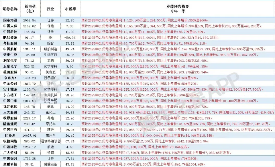4月以来,A股上市公司开始连续披露一季度业绩预报。 根据犀牛之星研究院统计,停止4月16日,A股市场已有232家上市公司披露了一季度业绩预报。此中,业绩预增130家,业绩略增51家,业绩扭亏34家,业绩减亏6家,业绩续盈4家,业绩预减2家,业绩略减4家。 从现在已披露的一季度业绩的94家公司,加上发布业绩预报的232家公司,在国内一系列政策“组合拳”相继推进落地后,多数企业都在2025年迎来了一个良好的开端。 A股一季报透视:央企、化工、AI硬件体现亮眼 停止4月17日,A股中已发布业绩预报的公司中有超九成业绩预喜,从行业分布来看,化工质料行业的公司在此轮业绩预报中更为突出;半导体、机器、新能源汽车等“硬科技”也体现颇佳;而光伏、造纸等行业则面临严肃寻衅。 从业绩预报最大变动幅度来看,有凌驾70家上市公司预计一季度归属母公司股东的净利润最高实现翻倍增长。 此中净利润增幅最高的前二十家公司,有9家公司净利润同比增幅超1000%,包罗有研新材(最高16370%)锐捷网络(5310.9%)、芯动联科(2800%)、中船防务(1200.91%)等。 不外,净利润同比增长排名最前的这批优等生,存在部分是由于低基数而导致一季度净利润暴增的情形。 筛选过程中,我们综合考量了企业市值规模、营收体量、同期基数等,终极筛选了这批"优等生": 此中,“中字头”央企体现尤为瞩目,在经济增长疲弱的阶段表现出了“国之重器”的强劲动能,成为经济稳增长的“定海神针”。 中国铝业(预增63%):氧化铝产能使用率突破92%,吨铝现金资本降至行业前10%分位; 中国巨石(预增110%):电子纱产能爬坡超预期,风电纱外洋订单同比翻倍。 “中字头”里船舶制造板块的综合体现颇佳,如中船防务就是受益于船舶制造效率提拔及联营企业投资收益增加,精益管理提拔船舶产物毛利率3.2个百分点;联营投资收益同比激增180%。 且值得一提的是,中船防务4月9日公告,Q1斩获125亿元新订单(完成年度目的71.6%),包罗9200TEU集装箱船等高端船型,履行后预计将对公司现金流及后续经营业绩产生积极影响。 中国动力(预增410%+):受益于公司订单增加与产能开释,预计今年一季度归母净利润为3亿元至4.5亿元,同比增长240.48%至410.73%。 公司一季度环球造船市场景心胸持续提拔,柴油机板块子公司销售规模持续快速增长,船用发动机销量同比+35%,高毛利船用机器订单占比提拔至42%;同时实行“资本工程”持续降本增效,通过数字化改造实现单台制造资本降落12% 板块内的综合体现较好的公司出现最多的在底子化工、电子行业。 化工方面,重要受益于地产、基建等领域需求修复和春耕补库动员需求放量,同时一些细分领域受到地缘政治影响产物代价持续上行。 但联合券商研报观点看,底子化工部分子行业(农药、氟化工、化肥)虽已进入上行周期,但团体仍受制于产能过剩及需求复苏力度,仍处于“磨底”阶段,除了要精选细分领域,还需警惕大宗商品代价波动对红利的腐蚀。 如预计一季度实现归母净利润同比增长145%至171%的巨化股份,业绩预增的缘故因由是因第二代氟制冷剂今年生产配额进一步削减,第三代氟制冷剂实行生产配额制、上年度对生产厂库和社会库存消化充分且卑鄙需求繁茂,供需格局进一步优化后产物代价保持持续上涨趋势,氟制冷剂毛利大幅上升;二为生产经营稳固增长,公司降服了生产经营季候性、产物市场结构性等影响因素。 且值得留意的是,巨化团体基于对公司前景信心,于2025年4月8日起3个月内开始增持股份,增持金额不少于5000万元,不外公司将来业绩可否持续高增长,仍需持续关注氟化工的供需格局。 化工领域的轻烃一体化龙头卫星化学,预计今年一季度归属于上市公司股东的净利润为14.5亿元至16.5亿元,同比增长41.79%至61.35%。公司经营业绩较上年同期增长,重要缘故因由系公司部分生产装置通过技术创新完成“老产物新工艺”开辟,实现产物提质,形制品质溢价。 新洋丰(预增85%)则为渠道重构,经销商库存周转天数压缩至23天(行业均匀45天);加上产物升级,公司的特种肥料营收占比突破35%,溢价本领显着提拔。 消耗电子则是政策+技术驱动需求复苏的作用下有局部回暖的信号,部分上游半导体设备(如红外测温仪、光学传感器)在汽车电子、AI硬件动员下,Q1入口更换订单增长30%,但短期来看居民消耗修复仍需时间,需警惕补贴退坡后需求回落风险。 以炬芯科技(预增384%)为例,公司预计2025年第一季度实现归属于母公司全部者的净利润约为4130万元,与上年同期(法定披露数据)相比,同比增长383.91%。 陈诉期内,公司产物体现非常卓越,端侧AI处置惩罚器良率提拔至92%,拿下小米、光彩亿元级订单,销售收入保持倍数增长;发布环球首款支持Llama3的智能座舱芯片,算力密度提拔3倍。 豪鹏科技(预增26%)的业绩增长重要得益于公司深化与头部客户的战略相助(AR眼镜电池环球市占率达38%,绑定Meta Quest4独家供应),驱动核心业务出货量增长,以及产能整合后管理资本降落和运营效率提拔。 值得留意的是,豪鹏科技4月7日在官网发布《关于美国关税政策调解对公司业务影响的阐明》,简朴来说就是将美国关税直接影响控制在低于2%,FOB模式(Free On Boat“离岸价”),无需负担关税资本,为企业净利润构筑了安全垫。 中信证券以为公司在AI眼镜、呆板人、呆板狗、AI玩具、AI耳机及助听器各类端侧AI方面盼望顺遂,尤其是在AI及AR眼镜领