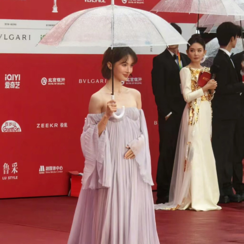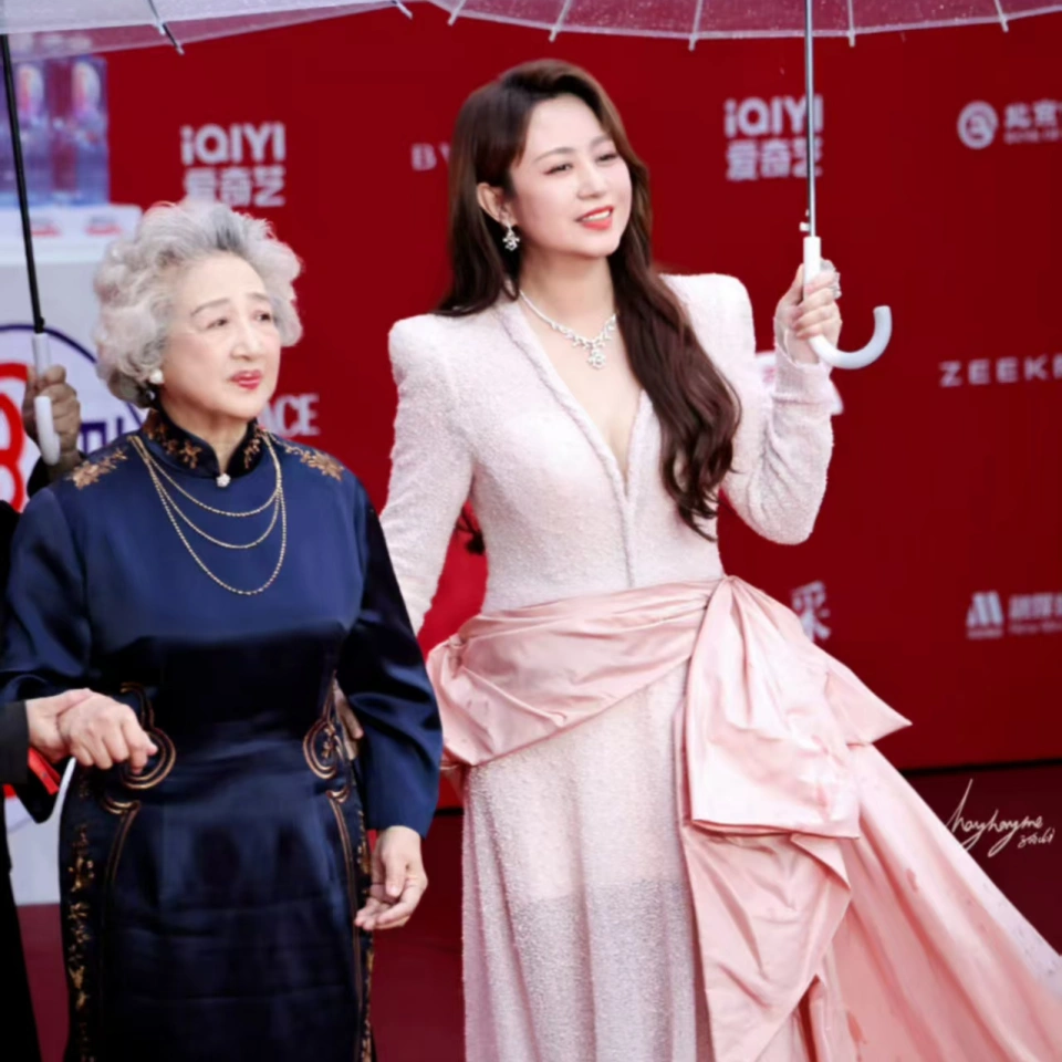 红毯上,马丽以粉色深V拖尾长裙亮相,搭配长卷发和淡雅妆容,团体造型既优美又吸睛。这一造型被多家媒体及网友评价为兼具温柔与气场,尤其撑伞雨中走红毯的画面更显浪漫氛围。 (二)演技实力:影后热门实至名归