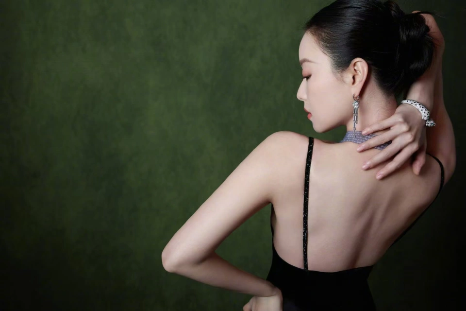 张婧仪作为《独一无二》剧组代表,玄色抹胸制服搭配复古盘发,被粉丝称为“复古公主”。玄色抹胸制服能够凸显出她的身段和气质,复古盘发则为团体造型增加了一份优雅和复古的气味。她在红毯上的清新气质和优雅仪态,让人面前一亮。 (二)清新气质:角色与本人的完善契合