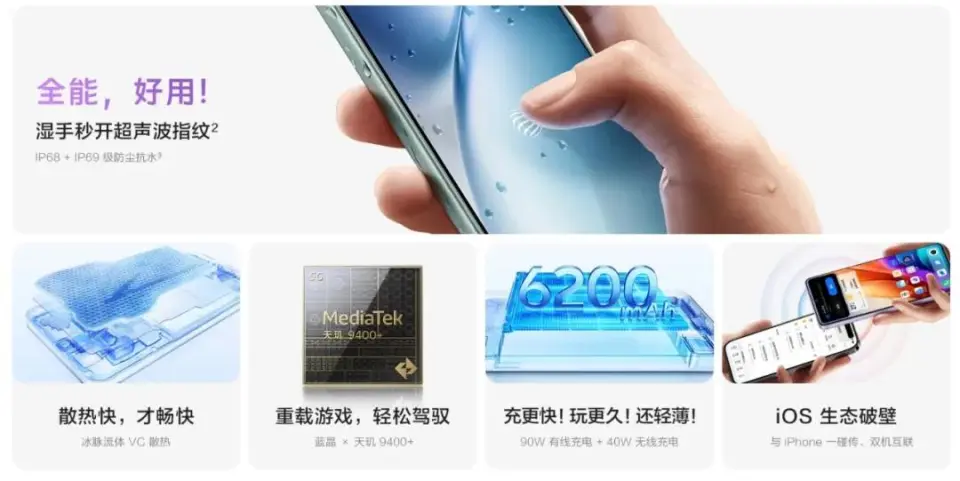 4 月 21 日,vivo 举行了新品发布会,正式发布了: ■ vivo X200s ■ vivo X200 Ultra 我们先看看 vivoX200s,作为标准版机型的半代升级,这次 X200s 的改变还是很大的。 屏幕由 X200 的等深四曲屏改成了京东方 1.5K 直屏,整机厚 7.99mm,重 203g/205g。 芯片升级为天玑9400+,短焦指纹升级为了超声波指纹,电池容量增大到了 6200mAh,支持 90W 有线充,且新增了 40W 无线充电。 影像方面也还不错,后置三摄分别是: ■ 主摄:50MP IMX921 OIS ■ 潜望长焦:50MP IMX882 OIS 长焦微距 ■ 超广角:50MP JN1 别的设置上也还是比力全面的,双扬声器,红外,NFC,支持IP68/69。 可以说这次 X200s 的升级点都还是比力着实的,包罗直屏、超声波指纹、增大电池、无线充电,这些升级点都值得给个好评。 固然这次值得说一说的是,这次发布会 vivo 就不停在夸大「苹替」。 看完了这次 vivo X200s 的一些新功能,可以或许显着感觉到 vivo 铁了心要做 iPhone 用户备胎的感觉。 起首是与 iPhone 的碰一碰互传,这个就不用说了,OPPO 等厂商着实也已经做了。 但这次 vivo 居然还支持与 iPhone 「双机互联」,可以或许实现与 iPhone 的短信、通知互通。 也就是说 iPhone 上收到的短信大概通知也能用 vivo 检察,纵然是 iPhone 上的未接来电也会在 vivo 手机上举行提示。 同时 vivo 手机空间音频也会兼容 AirPods 全系列,而且还支持查找耳机。 固然,各位不要把使用场景想得太理想。 根据官网的形貌,vivo 与 iPhone 短信、通知互通必要双端蓝牙配对,且双端必要联网,间隔在 10 米内才可以实现。 固然不能做到随时随地与 iPhone 互联,但对于双持用户来说,还是方便一些的。 接下来我们看看这次发布的 vivo X200 Ultra。 作为蓝厂的最新超大杯影像旗舰,它的设置尤其是影像方面也黑白常浮夸的。 搭载骁龙8至尊版芯片,6.82 英寸 2K 等深微曲屏,配备铠甲玻璃,支持圆偏振光,使用超声波屏幕指纹。 整机重 232/229g,厚 8.69mm。 内置 6000mAh 电池,支持 90W 有线充+40W 无线充。 配备双扬声器、红外、NFC、X轴马达,支持 IP68/69 防尘抗水,USB 3.2 Gen1。 固然这款机型的重点天然是在影像方面了,它搭载了蓝图 VS1 和 V3+ 影像芯片,后置三摄为: ■ 主摄:50MP LYT-818 35mm OIS ■ 超广角:50MP LYT-818 14mm OIS ■ 潜望长焦:200MP HP9S 85mm OIS 在视频方面,vivo X200 Ultra支持全焦段 4K 60帧 10bit Log、全焦段 4K 120 帧慢动作、全焦段 4K 延时录像、全焦段 4K 60 帧杜比视界。 这款机型在右侧中框下方也配备了一颗照相按钮,支持多种拍摄功能,位置相比 OPPO 以及 iPhone 的照相按钮更靠下一些,我今天去线下试了下,随手很多。 看完了这次的 vivo 新品,我个人以为 X200s 是更让我惊喜的,升级的点都很到位,影像本领固然不是极致,但着实也很良好了,它售价 4199 起。X200 Ultra 的话还是只适合对手机影像有极致寻求的用户,售价 6499 起。 在体系的一些新功能上,固然各家都在兼容 iPhone,但可以看出来 vivo 这次下了很大的刻意,它是真想把手机倾销给 iPhone 用户作为备用机。 |