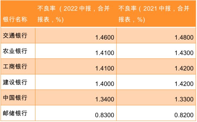 文|陈洪杰 编辑|袁满 制止8月31日,六家国有大行已连续披露完毕半年业绩报,交出了2022年上半年的结果单。 在红利方面,工商银行(601398.SH)以上半年1715.06亿元的归母净利润继承位居首位。建立银行(601939.SH)紧随厥后,上半年归母净利润1616.42亿元。农业银行(601288.SH)、中国银行(601988.SH)、邮储银行(601658.SH)、交通银行(601328.SH)上半年归母净利润分别是1289.45亿元、1199.24亿元、471.14亿元、440.4亿元。 从团体上来看,2022年上半年,银行业的团体资产质量变好。羁系数据体现,贸易银行不良贷款率1.67%,较上季末降落0.02个百分点。 而国有大行的资产质量优于贸易银行的匀称水平。详细来看,相较于上年末,四家大行的不良率出现了降落,两外两家轻微上升。 数据体现,制止2022年上半年末,六家国有大行的不良率均低于1.5%。交通银行、农业银行、工商银行、建立银行不良率较上年末有所降落。中国银行和邮储银行的不良率出现了上升,6月末分别是1.34%、0.83%。 2022年上半年,随着经济增速的下行和银行支持实体经济力度的增长,六大行净息差险些团体承压。仅有中国银行一家在6月末的净息差同比上年同期持平。 别的,2022年上半年银行理财子净利润排名座次调解,建信理财以19.13亿元的净利润位居六大行理财子的榜首。中银理财紧随厥后,上半年净利润为14.56亿元。 (数据泉源:WIND) 在大盘震荡下行的配景下,当下银行板块并未走出低估值,国有大行也不例外。制止2022年9月1日下战书收盘,中国银行市净率为0.46,农业银行市净率为0.47,工商银行市净率为0.52,建立银行市净率为0.54,交通银行市净率为0.42,邮储银行市净率为0.64。 当下,银行业市净率较低的缘故原由与净息差和不良率有关。市场人士称,受LPR下行和让利实体经济的影响,贷款收益率下行趋势比力显着;而存款付息率的变动相对较少,因而对银行的息差造成了压力。别的,羁系要求银行尤其是国有大行加大对小微企业、“三农”等方面的投放,“以量补价”,并进步不良容忍度。部分投资者对银行业未来的红利本事和资产质量采取观望态度,影响了近期银行业的估值。 不良率:四家降落两家上升 资产质量是银行康健发展的基石,不停被视为“生命线”。比年来,银行谋划环境日趋复杂严肃,不确定性显着增长,对银行的资产质量提出了新的寻衅。 一样平常来说,国有大行的不良率要优于银行业的匀称水平。数据体现,制止2022年上半年末,六家国有大行的不良率均低于1.5%。交通银行、农业银行、工商银行、建立银行的不良率较上年末呈降落趋势,中国银行和邮储银行的不良率稍有上升。 进一步来看,交通银行在六大行中的不良率最高。数据体现,制止2022年上半年,其不良贷款余额1032.32亿元,不良贷款率1.46%,分别较上年末增长64.36亿元,但降落0.02个百分点。“逾期贷款余额根本稳固,占比力年初降落。对逾期贷款采取审慎的分类尺度,逾期60天以上的对公贷款均已纳入不良贷款。”交通银行在半年报中称。 相较于2021年末,农业银行和建立银行的不良率在2022年6月末也降落了0.02个百分点,分别是1.41%、1.4%。数据体现,制止2022年6月30日,农业银行不良贷款余额2644.55亿元,较上年末增长186.73亿元;不良贷款率1.41%。建立银行不良贷款2855.09亿元,较上年末增长194.38亿元;不良率1.40%。 8月29日,农业银行副行长徐瀚在业绩发布会上称,农行对于法人贷款逾期高出20天以上的,全部计为不良。个人贷款方面,逾期30天以上的光荣贷款全部计为不良。逾期贷款和不良贷款比是70%,比年初降落了4.3个百分点,审慎性进一步进步。 “建立银行的资产质量分类很踏实,分类很审慎,制止6月末,逾期不良的铰剪差是-879亿元,在业内处于最好的水平;逾期90天以上的贷款占不良贷款的比例是44.89%,不停处于比力低的水平。”8月31日,建立银行行长张金良在举行的业绩发布会上体现。 在六大行中,不良率最低者为邮储银行。数据体现,制止6月末,其不良贷款余额578.88亿元,较上年末增长52.03亿元;不良贷款率0.83%,较上年末微升0.01个百分点。 (数据泉源:WIND) 8月19日,中国银保监会公布的2022年二季度银行业保险业重要羁系指标数据体现,2022年二季度末,贸易银行不良贷款余额3万亿元,较上季末增长416亿元;贸易银行不良贷款率1.67%,较上季末降落0.02个百分点。贸易银行正常贷款余额174.2万亿元,此中正常类贷款余额170.2万亿元,关注类贷款余额4万亿元。 银行业在资产质量改善的同时,也面临着一些逆境。多家银行管理层在近期举行的业绩发布会中提到,对于疫情受到了影响的行业,比如餐饮业,旅游业以及小微企业,银行的资产质量蒙受了肯定压力。“这进而影响到我们一些个人住房贷款。我们在一方面做好对企业的纾困的同时,也在动态的监控,举行不停的压力测试,总体风险可控。”徐瀚称。 净息差团体承压 净息差是贸易银行净利钱收入与匀称生息资产的比例,为评价贸易银行生息资产收益本事和风险订价本事的关键指标。净息差越高,则反映贸易银行运用生息资产的服从越高。 比年来,银行业净息差面临较大寻衅。重要缘故原由是,宽光荣政策连续发力,但同时有用需求疲弱,各类贷款利率继承出现下行态势。但同时,银行之间存款竞争压力较大,焦点存款本钱相对刚性,导致负债本钱受益于利率降落的水平低。 国有大行也不例外。数据体现,制止2022年6月末,工商银行净