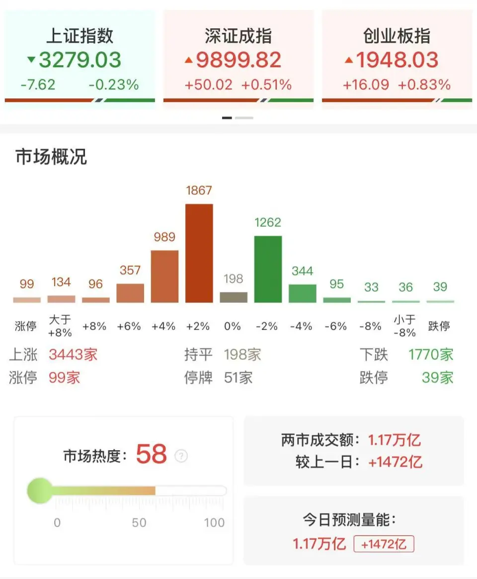 财联社4月30日讯,市场全天震荡分化,三大指数涨跌不一。沪深两市全天成交额1.17万亿,较上个生意业务日放量1472亿。盘面上,市场热门快速轮动,个股涨多跌少,全市场超3400只个股上涨。从板块来看,呆板人概念股再度大涨,精工科技等10余股涨停。算力概念股睁开反弹,鸿博股份等涨停。华为概念股表现生动,常山北明涨停。下跌方面,银行股团体调解,中原银行跌超8%。停止收盘,沪指跌0.23%,深成指涨0.51%,创业板指涨0.83%。
