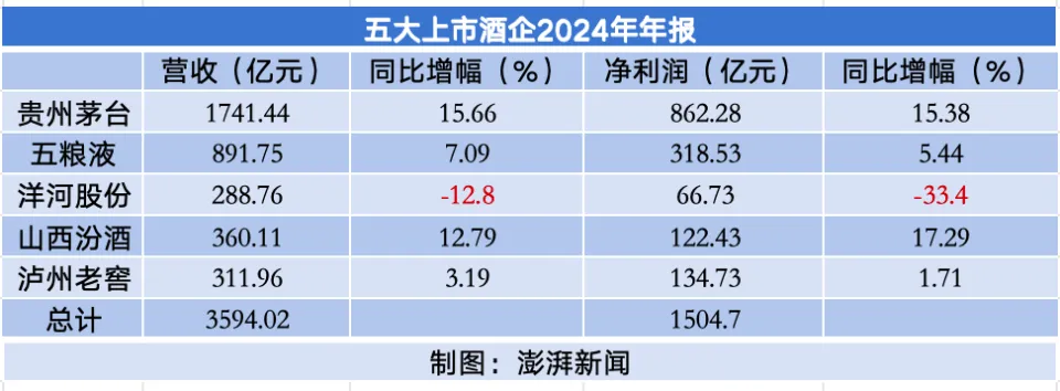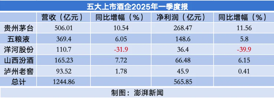 五家白酒企业年报、一季报收官。在白酒行业承压的配景下白酒体现分化,一季度头部酒企仍实现开门红。 截至4月30日,贵州茅台(600519.SH)、五粮液(000858.SZ)、洋河股份(002304.SZ)、山西汾酒(600809.SH)及泸州老窖(000568.SZ)五大白酒企业连续披露完2024年年报以及2025年一季报。据汹涌消息记者盘算,去年白酒行业营收总额超3500亿元,净利超1500亿元。 这五家企业在白酒市场中占据着举足轻重的职位。此中,贵州茅台的主导产物“贵州茅台酒”是我国大曲酱香型白酒的鼻祖和典范代表。五粮液主要产物“五粮液酒”是我国浓香型白酒的典范代表。 山西汾酒是清香型白酒国家尺度的制定者之一,主要产物为汾酒。洋河股份拥有洋河、双沟两大中国名酒,主导产物有梦之蓝、天之蓝、海之蓝、苏酒、珍宝坊、洋河大曲、双沟大曲等系列白酒。泸州老窖主要产物包罗“国窖1573”“泸州老窖”等系列白酒。 四家白酒企业去年业绩创新高,洋河业绩双降 结合Wind数据梳理,除了洋河股份营收、净利润双双下滑外,其他四家白酒企业去年业绩均创历史新高。 具体来看,2024年,贵州茅台营收、净利润远超其他白酒企业,营收增速领跑行业,去年日均净赚约3.28亿元。 不外值得注意的是,2022年以来,茅台已连续三年实现营收与净利润增幅超15%完成既定目标,2025年,茅台将整年营收增幅目标定为9%,相较往年15%的目标有所低沉。 五粮液团体业绩也稳步增长。2024年实现业务收入891.75亿元,同比增长7.09%;归母净利润为318.53亿元,同比增长5.44%。去年五粮液营收不及原有预期,去年年初曾规划2024年业务总收入力图实现两位数增长。年报指出,鉴于白酒产业处于深度调解期,产业颠簸加大、存量竞争加剧。 山西汾酒增势迅猛,营收与净利润增速均为双位数。从业务收入来看,山西汾酒在五家上市白酒企业中乐成跻身第三名,净利润增幅居五大上市酒厂的第一位,高达17.29%。具体来看,山西汾酒2024年实现营收360.11亿元,同比增长12.79%;归母净利润为122.43亿元,同比增长17.29%。 酒业独立品评人肖竹青以为,白酒行业已进入深度分化期。在酱香、浓香和清香三分天下的白酒市场格局中,清香型白酒代表汾酒正崛起,推动行业开启“茅五汾”期间,突破了以往酱香、浓香主导的高端市场,使三种香型在市场中形成鼎立之势,丰富了消耗者的选择,拓宽了行业发展路径。汾酒作为清香型白酒的代表,未来业绩增长仍旧值得等待,预计2025年整年营收将会高出预期。 泸州老窖2024年整年实现营收311.96亿元,同比增长3.19%;归母净利润为134.73亿元,同比增长1.71%,实现同比妥当增长。 比年,泸州老窖次高端产物矩阵连续扩容。肖竹青指出,泸州老窖重点发力低度酒取得了显着成效。在河北、山东、江苏、浙北等地保持增长,显示出低度酒在特定地区市场的巨大潜力。另一方面,泸州老窖品牌也突破了100亿体量,强化了腰部产物的上风。 洋河股份去年营收与净利润双双同比下滑。具体来看,去年洋河股份实现营收288.76亿元,同比降落12.8%;归母净利润66.73亿元,同比降落33.4%。 针对这一业绩体现,洋河股份于财报中指出,陈诉期初,公司规划2024年力图实现业务收入同比增长5%至10%。但因陈诉期内白酒行业进入存量竞争阶段,市场竞争更加白热化,公司主力产物会合的中端和次高端价位段承压较大,本着科学发展和可连续发展的原则,公司积极调解谋划计谋。 当前,白酒行业依然处于新一轮产业调解周期中。对于未来的行业格局与趋势,茅台年报指出,宏观方面,我国经济长期向好的根本趋势没有改变也不会改变。2025年,随着各项宏观政策连续发力,消耗场景不绝拓展,消耗将继续保持安稳、可连续增长。行业方面。白酒行业正处于宏观经济周期与产业调解周期的双重叠加时期,未来发展虽面对不少困难,但有利因素强于倒霉因素,总体发展态势依然向好。 一季报再现开门红,但三家企业增速降至个位数 在白酒行业承压的配景下,贵州茅台、五粮液、山西汾酒以及泸州老窖四家白酒企业一季度业绩创历史同期新高,但除茅台业绩实现双位数增长外,上述三家业绩增速均降至个位数。 具体来看,本年一季度,茅台实现业务收入506.01亿元,同比增长10.54%;归母净利润为268.47亿元,同比增长11.56%。外洋市场与系列酒产物将成为茅台下一步发展的重点方向。据贵州茅台官微报道,本年一季度茅台酒和酱香系列酒在各省市的动销增长,市场总体体现稳中有增,已圆满完成一季度各项销售指标,为整年目标实现奠基了坚固底子。 五粮液一季度实现营收369.4亿元,同比增长6.05%;归母净利润148.6亿元,同比增长5.8%。山西汾酒高出洋河股份与泸州老窖,稳居第三。山西汾酒一季度实现营收165.23亿元,同比上涨7.72%;净利润为66.48亿元,同比增长6.15%。泸州老窖实现营收达93.52亿元,同比增长1.78%;归母净利润为45.9亿元,同比增长0.41%。 洋河股份一季度业绩继续承压,营收、净利润均同比下滑高出三成。针对一季度业绩下滑,财报指出,主要由于受到白酒销售市场行情的影响,产物销售量和销售收入有所淘汰。 据浙商证券研报指出,一季度白酒行业团体回款进度正常、库存略有去化、批价体现稳定,分代价带看,高端酒妥当、地区酒体现较优、次高端酒相对承压。 前述研报进一步指出,高端酒方面,贵州茅台一季度茅台酒和酱香系列酒在各省市的动销增长,市场总体体现稳中有增