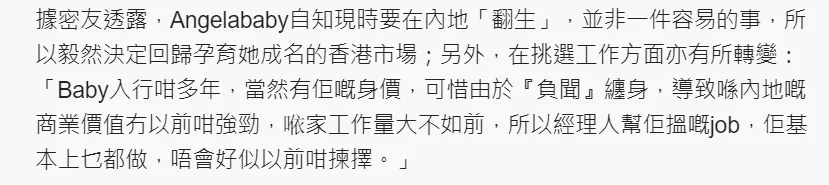 Angelababy(杨颖)与黄晓明仳离后,一直都处于单身状态。而黄晓明固然此前与叶珂官宣恋情,但是却恰似闹了一场笑话。 就在上月,网红“妖怪”透露叶珂已经为黄晓明机密诞下女儿,但黄晓明本人并未回应。想必对于这些事故,Baby应该也有所耳闻。 但是,黄晓明究竟也是已往式了,信任不会对她的心情有什么影响。5月26日Baby在澳门出席运动,为某品牌担任代言人。 她一袭蓝色长裙现身,状态看上去非常不错,而且身段也很好。 5月27日据港媒报道,在历经禁言风波后,Baby的人气已经大不如前。港媒指,在日前拍到Baby与经纪人Kim现身中环置地广场门口等车的画面,从画面中可以大概看到Baby穿着休闲,两人在等车期间也一直在语言,大概是在评论工作。 随后两人乘坐商务车来到瑰丽旅店,据悉,该旅店旗下的服务式住宅月租价格不菲,开放式单元每月5.7万港元起,三房单元更达37.5万港元。 据Baby的挚友透露:“现在Baby恒久驻扎香港,Kim也很认真帮她找机会,经常带着她随处会见影戏公司老板和导演,Kim还会张罗各种饭局应酬,渴望能在香港闯出新天地。 而现在她在该五星级旅店服务室公寓居住,据悉都是自费。只管现在还没谈成大的项目,但她以前赚得多,生存完全不消愁,只是排场确实不能跟从前相比。 过了几天,港媒捕捉到Baby与挚友现身某牛腩店派对,由于她戴着帽子口罩遮面,在餐厅内用饭竟然都无人认出。 据港媒称,看到Baby在用饭时心情很好,她一边享用牛腩河粉和冻奶茶,一边与友人谈天,吃得是相称投入。 两人离开后坐车离开,前去某名店血拼购物。 Angelababy先试穿了一件白色短袖T恤,非常满意,于是立刻让店员剪掉吊牌直接穿在身上,随后她又选择了一件玄色抹胸上衣。 这件上衣真是非常火辣的格局,但衣服上死后,却显着看到她的腰围变粗了一圈,而且赘肉显着,小腹还凸出来了。 这身段走样显着,看来,Baby近来应该思量健身做一下身段管理了。 只管这件衣服袒露了缺点,但是Baby照旧表现服务员将衣服包起来。 之后两人又继续逛街,前去饰品店以及太阳眼镜专柜,她心情非常不错,还不绝与挚友自拍。 看来Baby私下真是很没有什么偶像包袱呀。 |